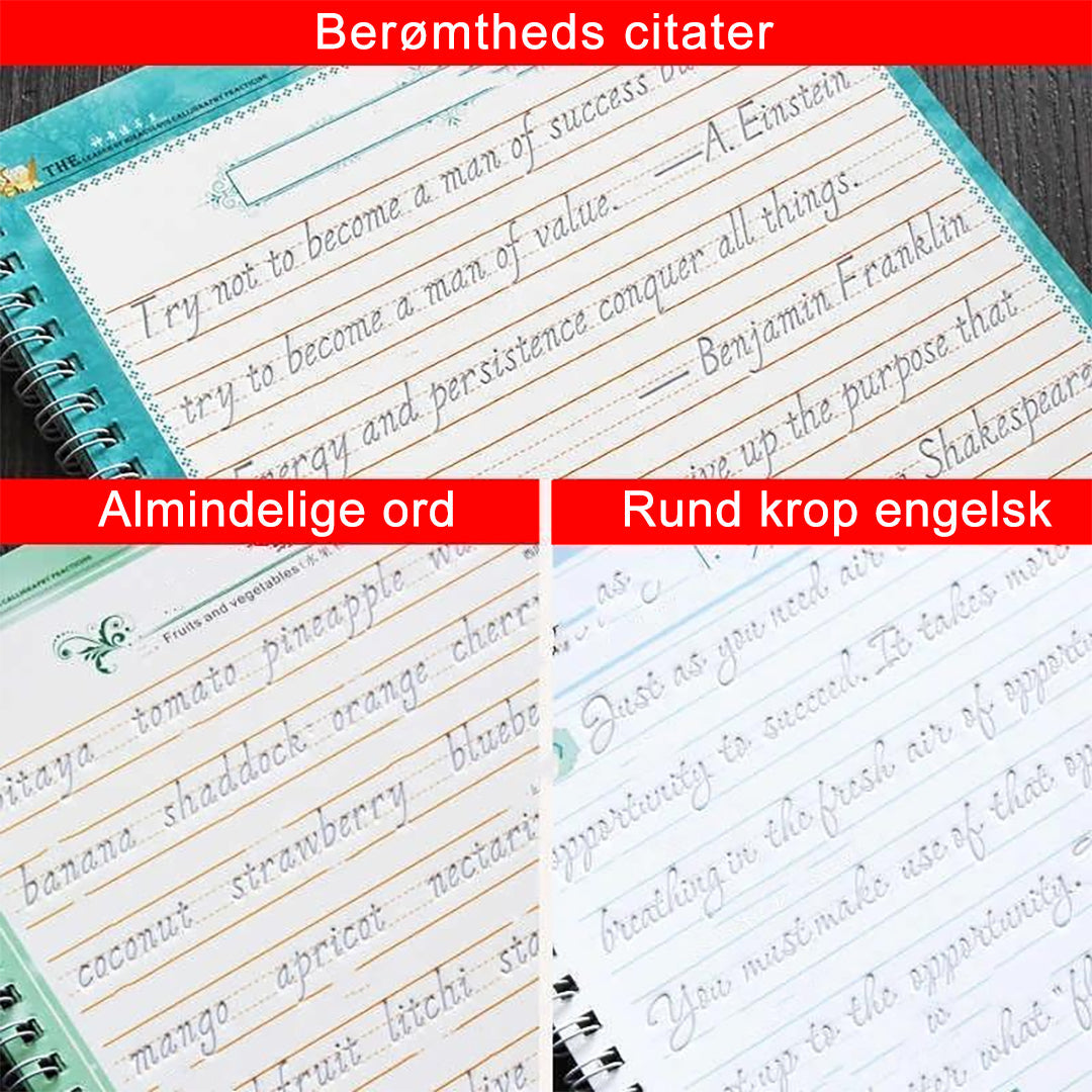 Håndskriften forsvinder automatisk efter tørring, fantastisk til gentagne gange at øve sig. Hvis du ønsker at lære kalligrafi, er en kopibog et must-have. Håndskrift Copybook kun, andet tilbehør demo i billedet er ikke inkluderet.