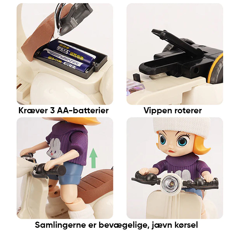 LYS OG LYDEFFEKTER: Dette motorcykellegetøj er designet med lys og lyd, hvilket gør det sejere og mere iøjnefaldende om natten.