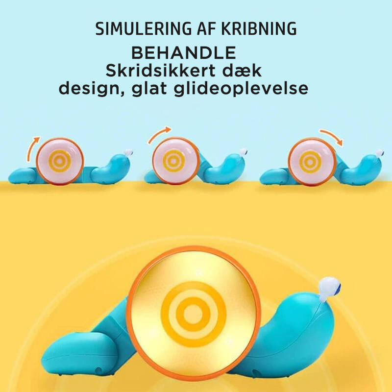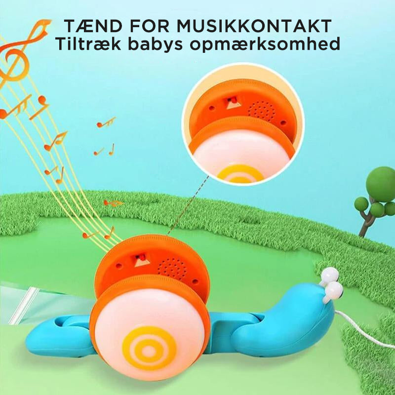 Simulerer et sødt sneglegetøj. Barnet kan trække den rundt, hvilket kan forbedre fleksibilitet, hånd-øje-koordination og manøvredygtighed. Med farverige lys og musik tiltrækker den barnets opmærksomhed og opmuntrer barnet til at lære sproget. -