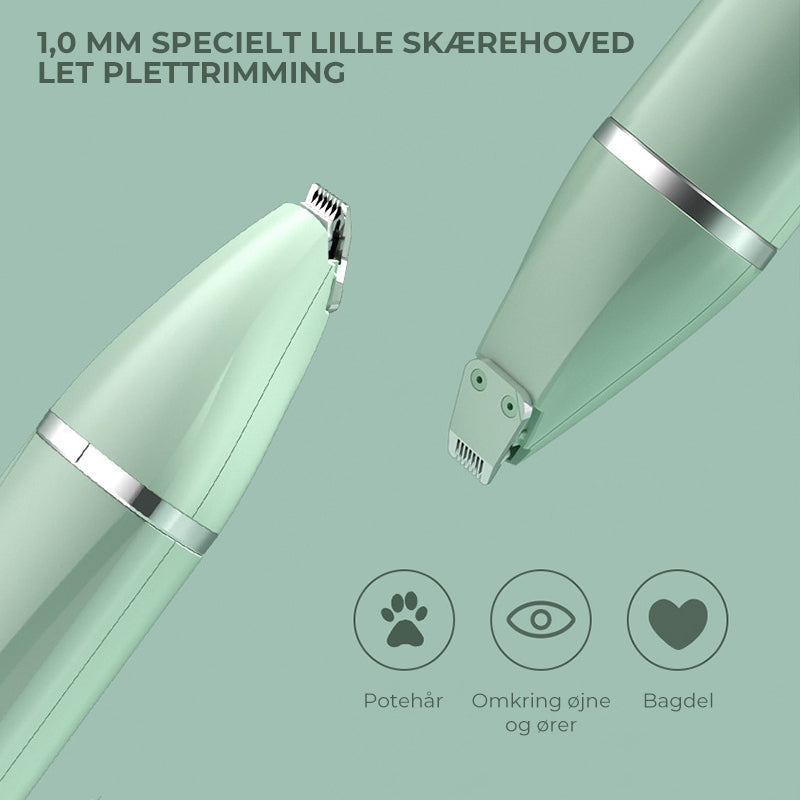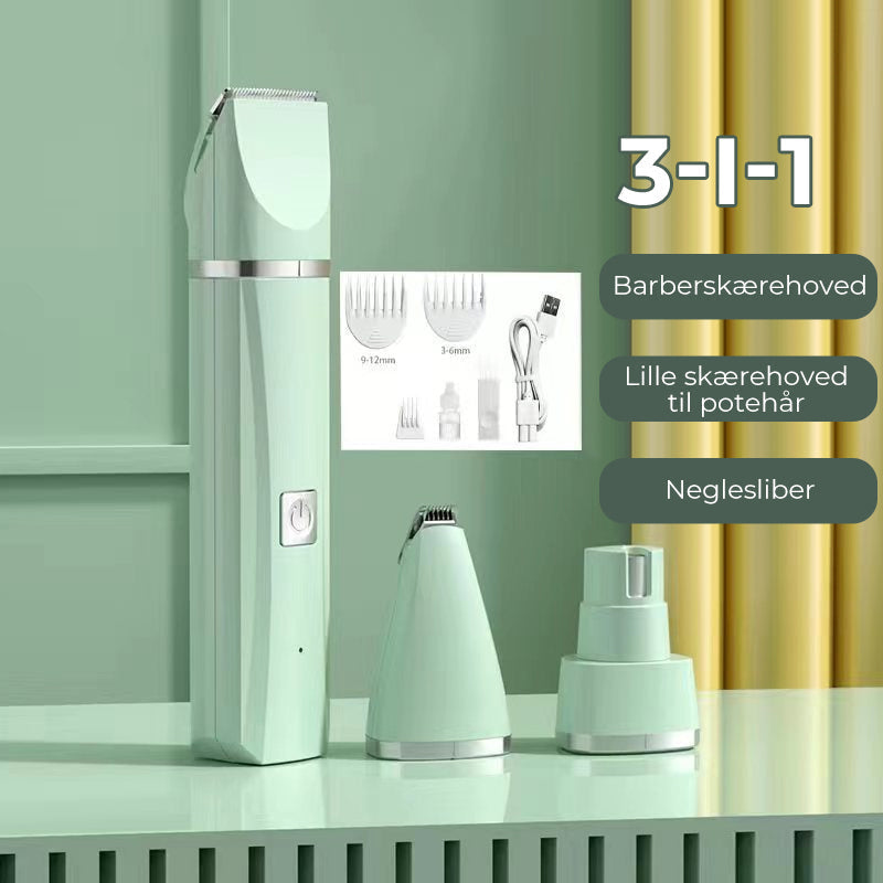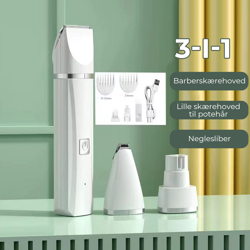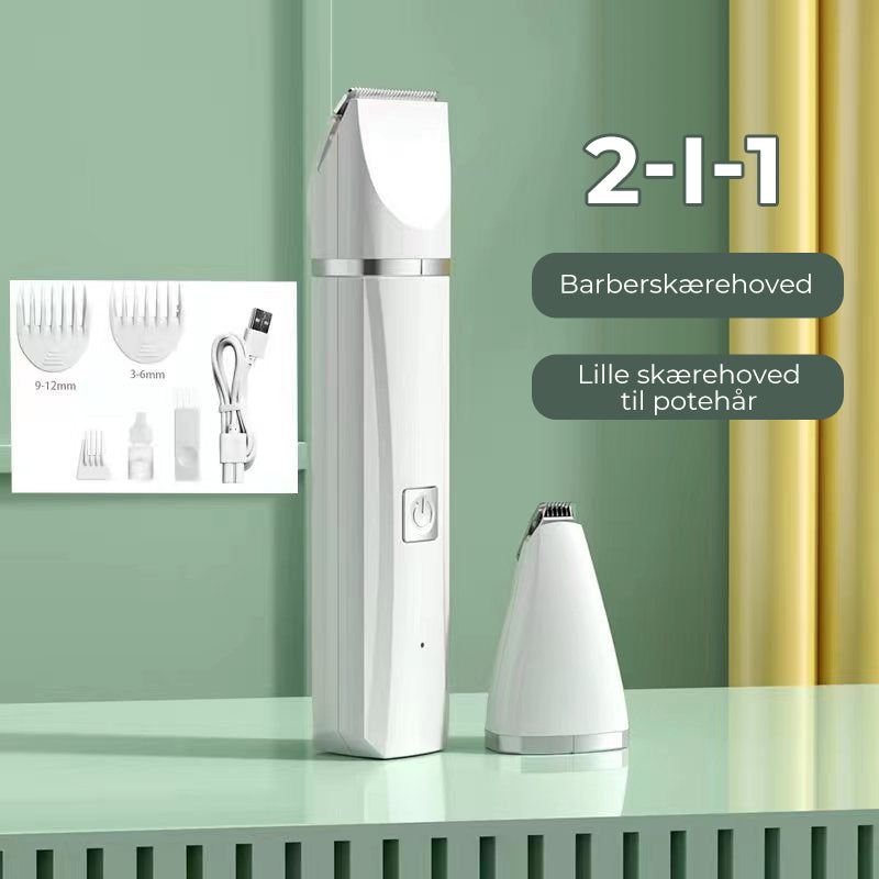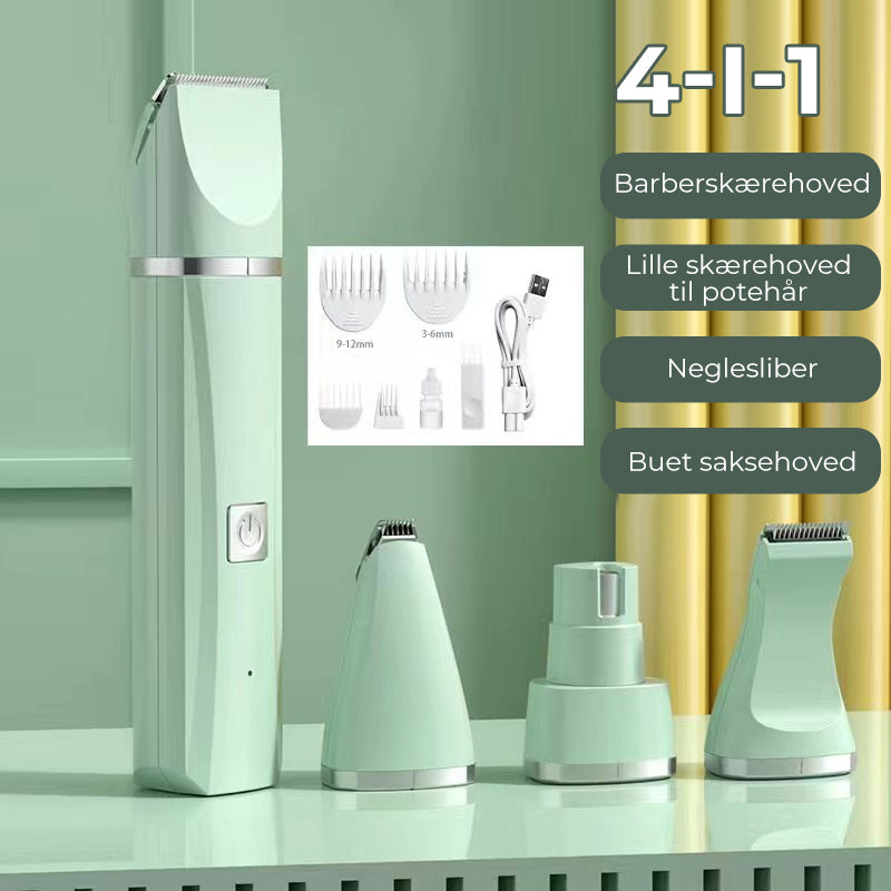 Pakke: 1* kæledyrshaver, 4* udskiftelige skærehoveder, 1* manual, 1* kabel