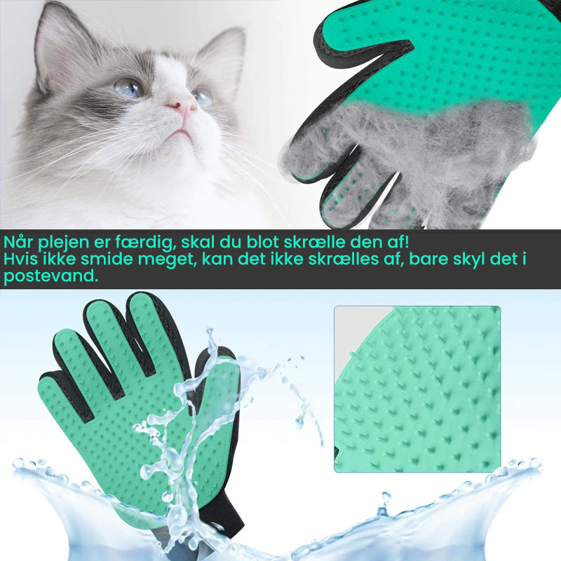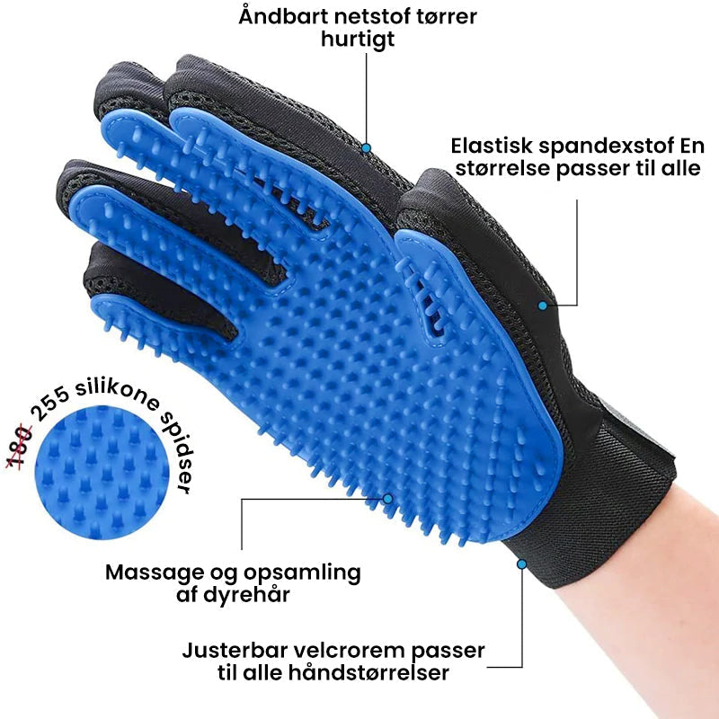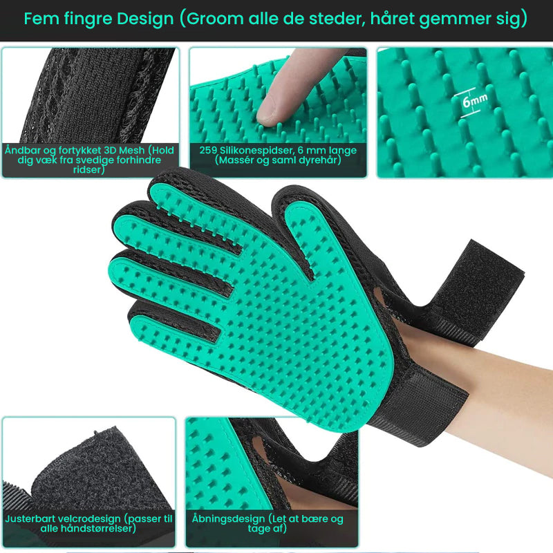 Vores fem-finger designede dyrehandsker tilbyder dig perfekt løsning, der sikrer blid og effektiv pleje og massere dine kæledyr!