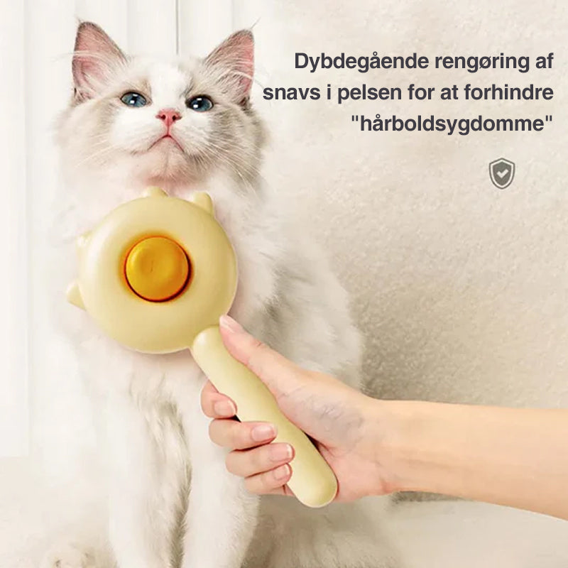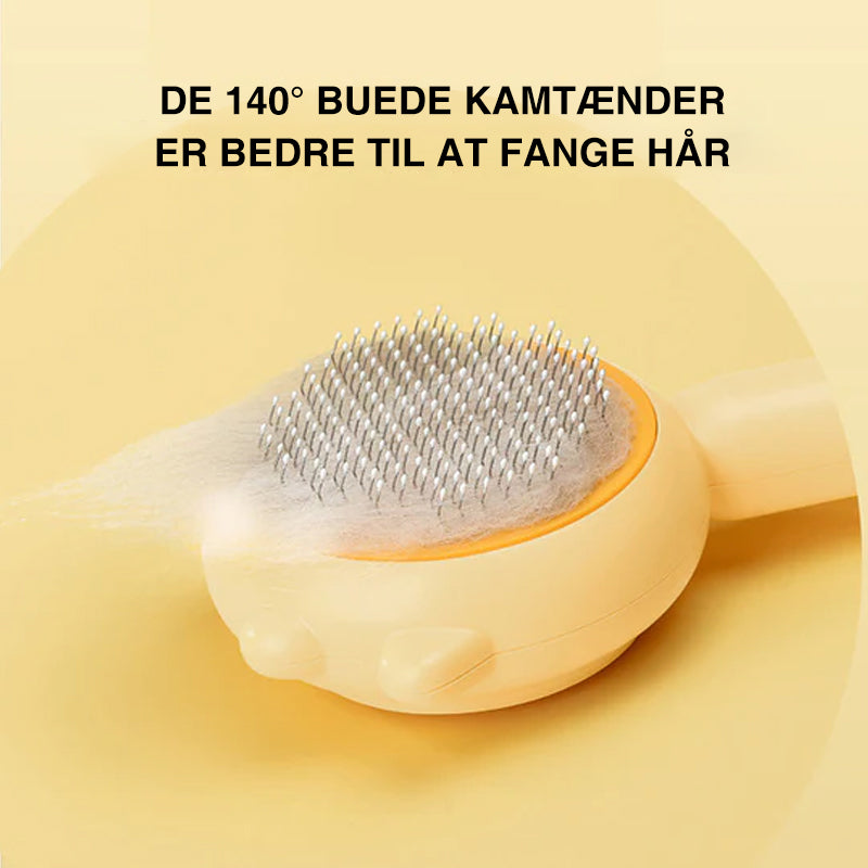 Nem at rengøre: Når du er færdig med at børste dit kæledyr, skal du blot klikke på knappen, så børstehårene trækkes tilbage i børsten. Denne funktion gør det meget nemt at fjerne alt hår fra børsten, så den er klar til næste gang.