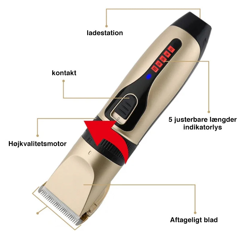 Har et lavt støjniveau (mindre end 50 db), mens den stadig leverer en kraftig højhastighedseffekt, hvilket gør kæledyrsbarbermaskinen perfekt til nervøse kæledyr. De beroliges og så de kan sidde stille, mens du arbejder.