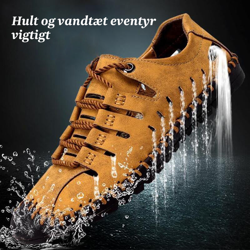 Afslappede lædersandaler med mikrofibersyninger i udhulet design (Herre)