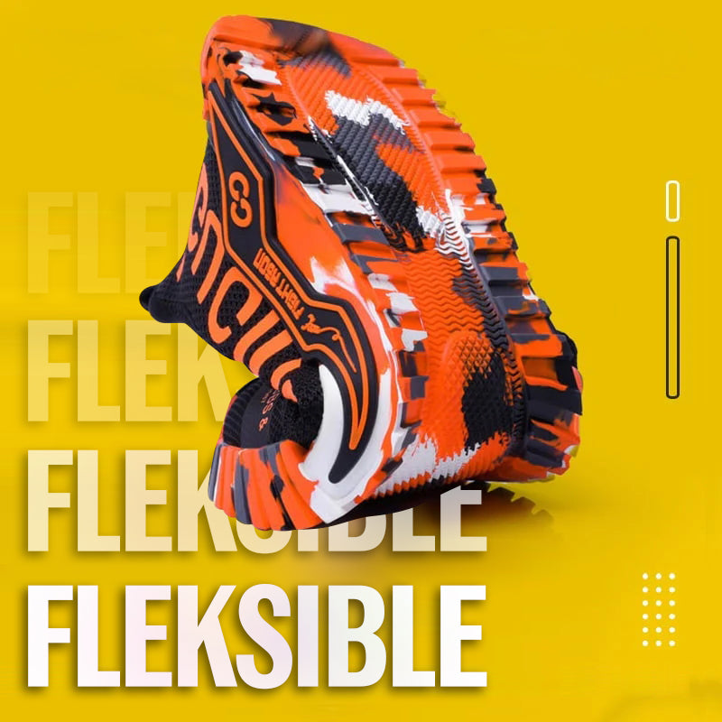 Gummistøbningsmateriale, med innovativt skalabøjningsdesign, dynamisk pasform til foden, reducerer bøjningsmodstanden og tillader naturlige og jævne trin. Sålen tilføjer skridsikring og giver side-til-side stabilitet under bevægelse.