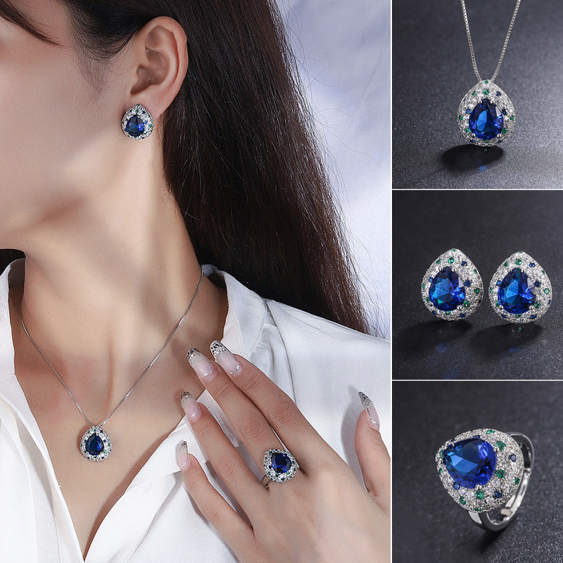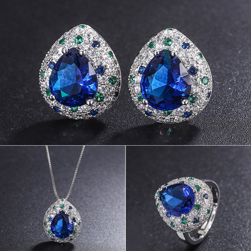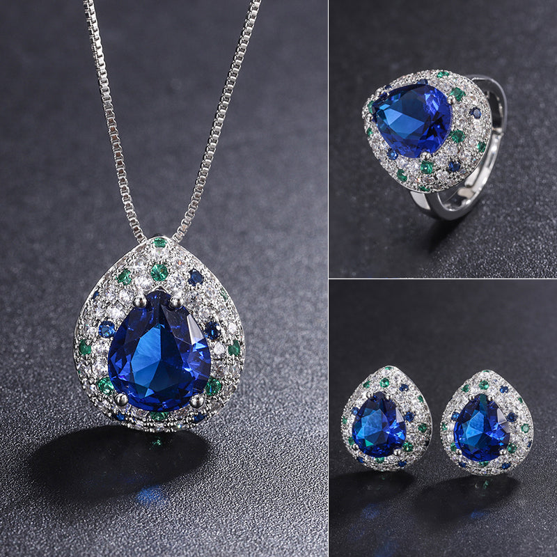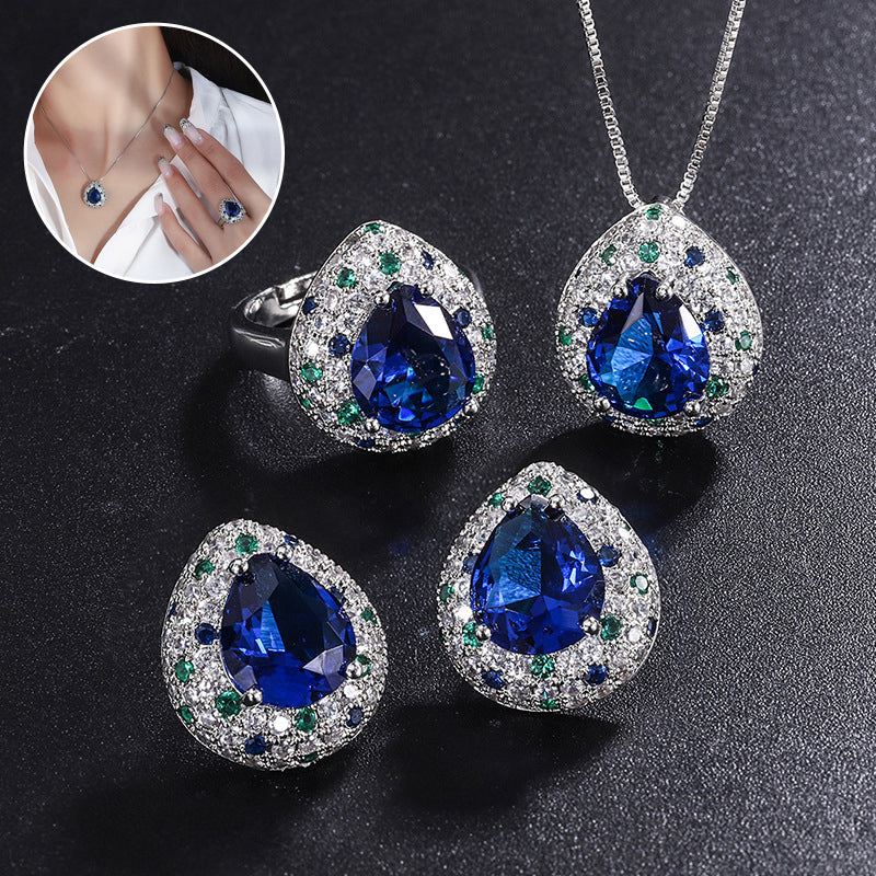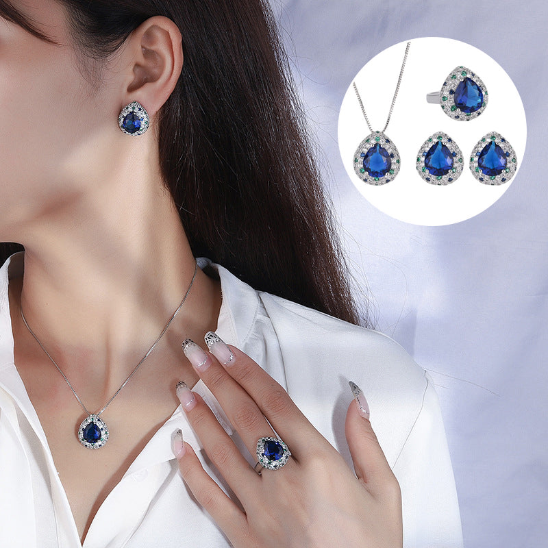 ♥SAFIRMATERIALER♥ Safirhalskæden, armbåndsarmbåndet og øreringene er lavet af miljøvenligt materiale, Zinklegering. Blyfrie og nikkelfrie, bestået schweizisk SGS inspektionsstandard, ingen skade mod helbredet.