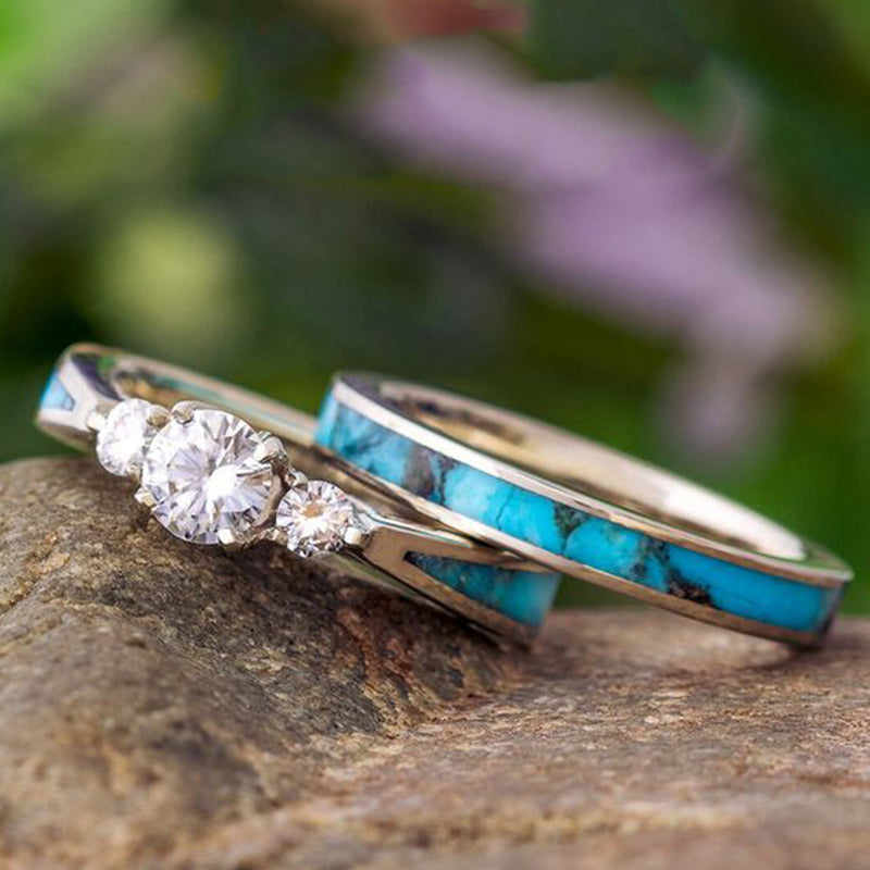 • Indlæs billede til gallerivisning Simuleret Diamant Par-ringe (2 STK)