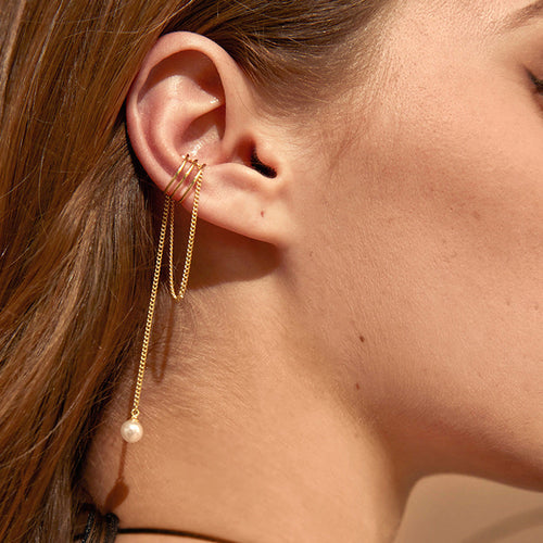 Perlekæde manchetørering med kvaster (Kun højre øre)