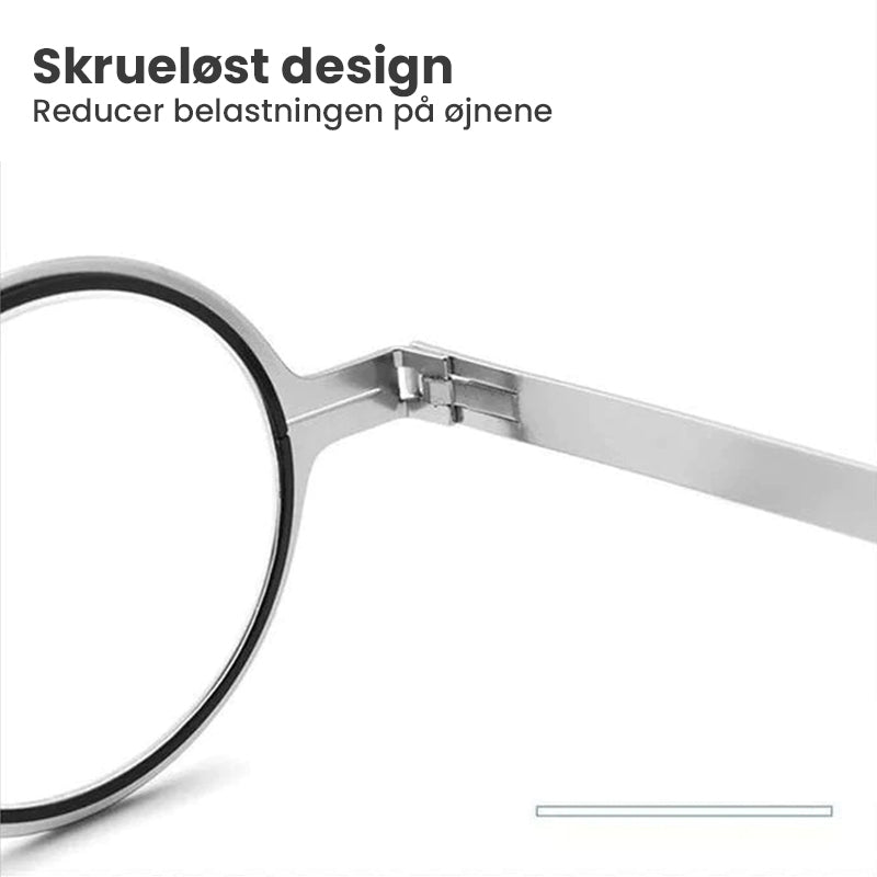 Det skrueløse design reducerer brillernes vægt. På læsebriller, der er særligt gamle, skal skruerne fjernes.