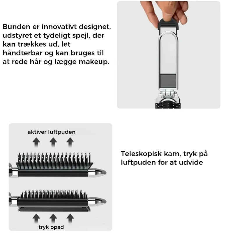 - Pladsbesparende hårbørsten kommer i fuld størrelse og kan foldes ned til ministørrelse, fantastisk til pungen, dokumentmappen, tasken eller lommen.