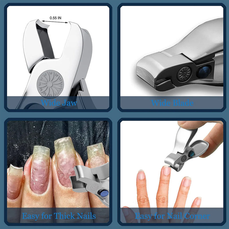 EKSTRA BREDE BUEDE KLIPPEBLADE TIL TYKKE NEGLE: De skarpe, buede, brede kæbeblade kan åbnes op til 15 mm. Forskellig fra almindelige negleklippere. Perfekte til de tykke eller indgroede tånegle på grund af hårdhed, svampeinfektion, diabetes, paronychia, aldring og andre helbredsproblemer, kan bruges som et manicure- eller pedicureværktøj.