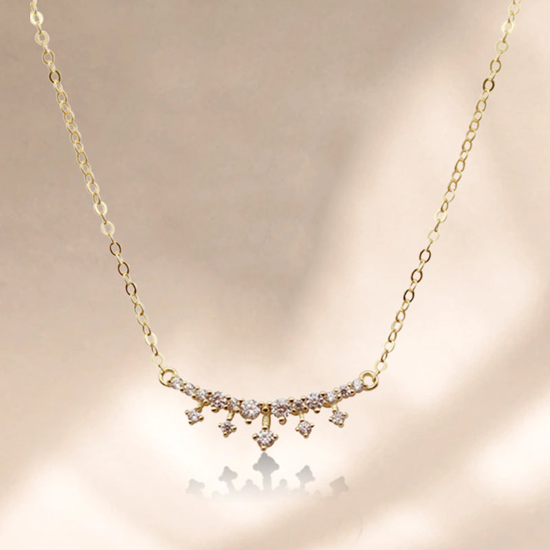- Vores lille fantastiske stunning bar halskæde har funklende krystaller, der leverer en glamourøs vibe.It er perfekt til en afslappet forår sommer outfit og kan også være klædt op til en aften i byen