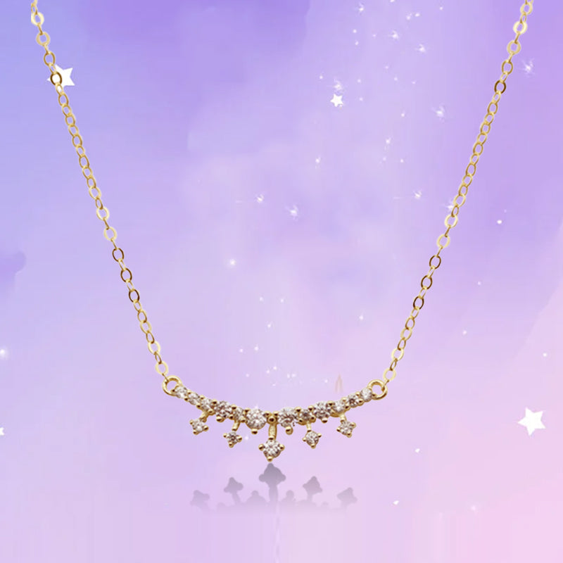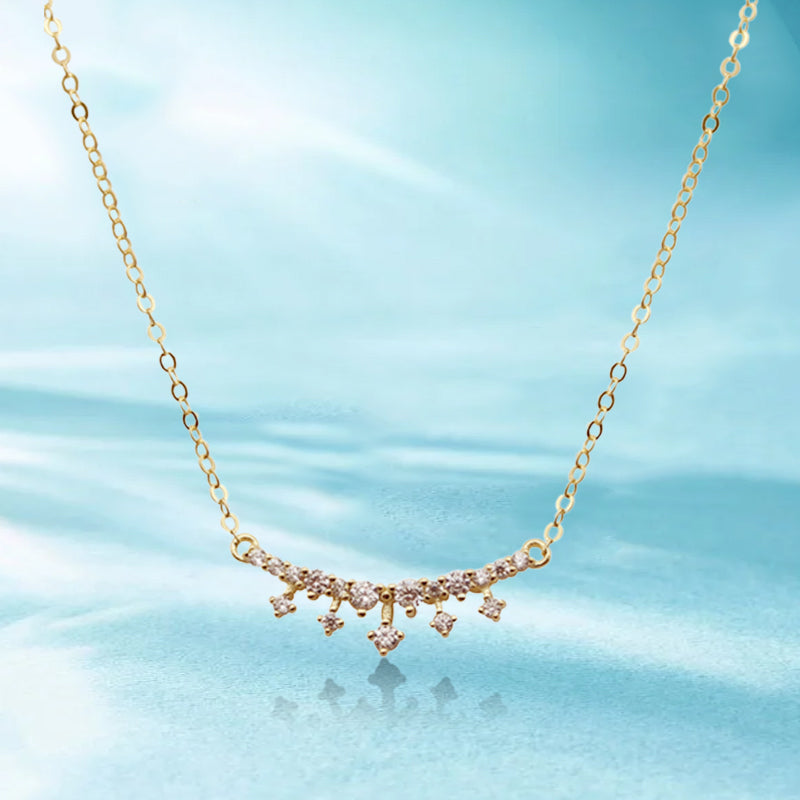 - Denne smukke og søde diamantkrone kravebenskæde kan du vælge længden, så den passer til dit look.Den er ideel til at lægge sammen med andre halskæder for et trendy look
