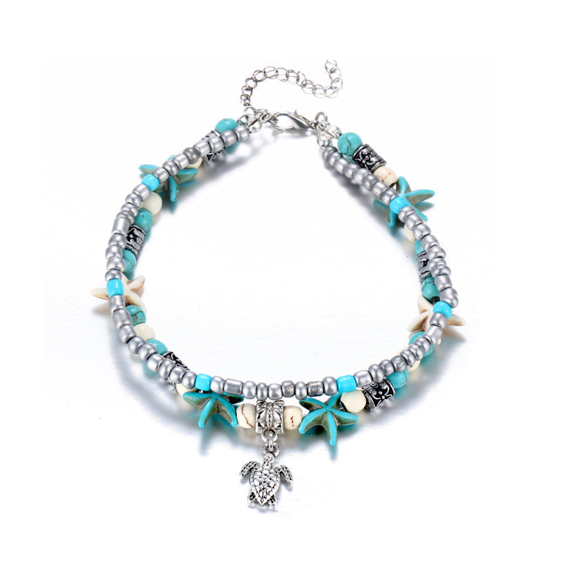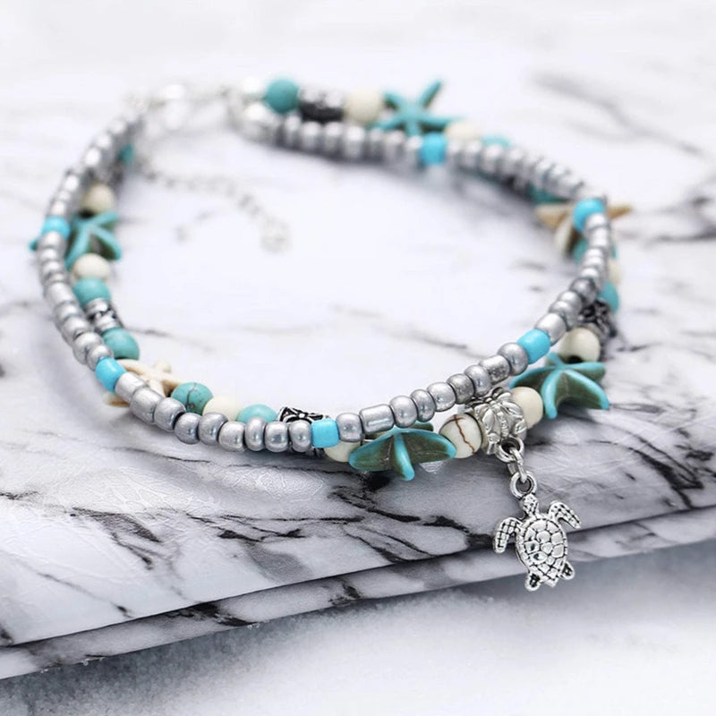- 🌊Unikt design: Det er boheme stil mode design. Strandankelettens turkise perler og den søde skildpaddeform viser den afslappede hav- og strandstil. Komfortabel og let.