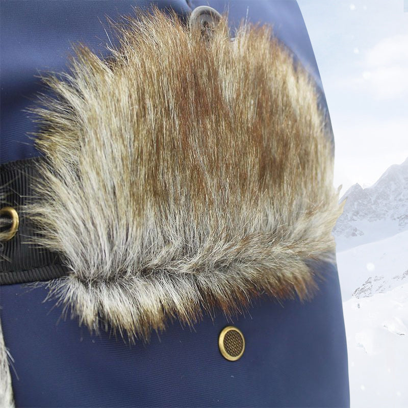 - Vindtæt stof - afviser kold vind, transporterer varme, pakker sig godt rundt om hovedet, så det ikke fryser.