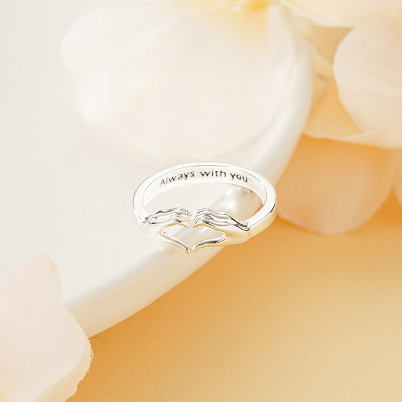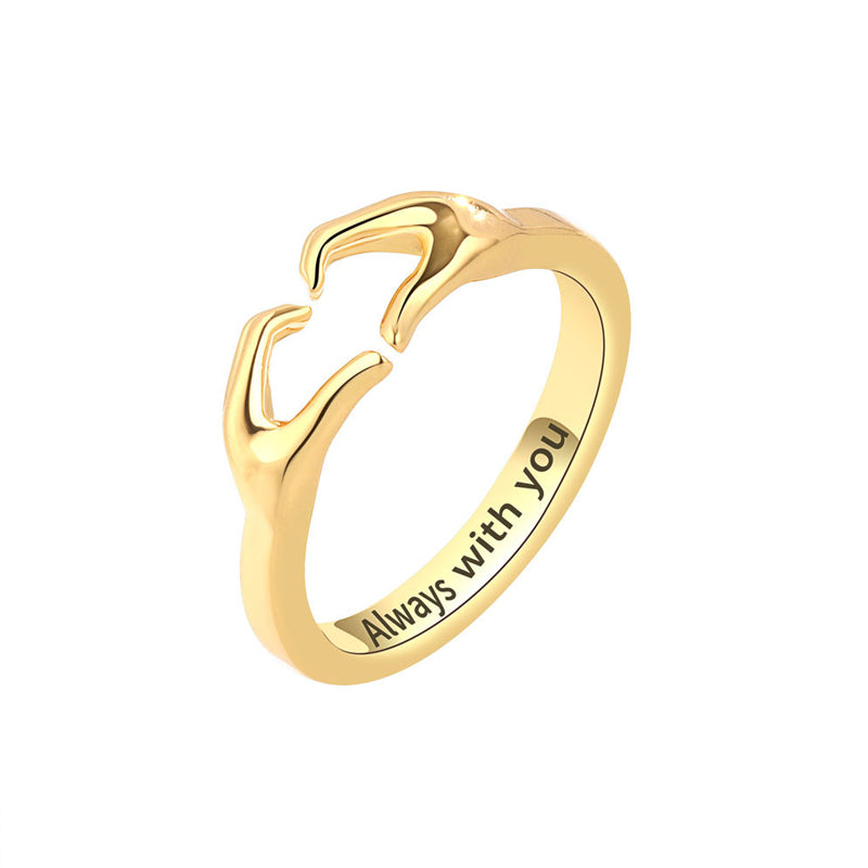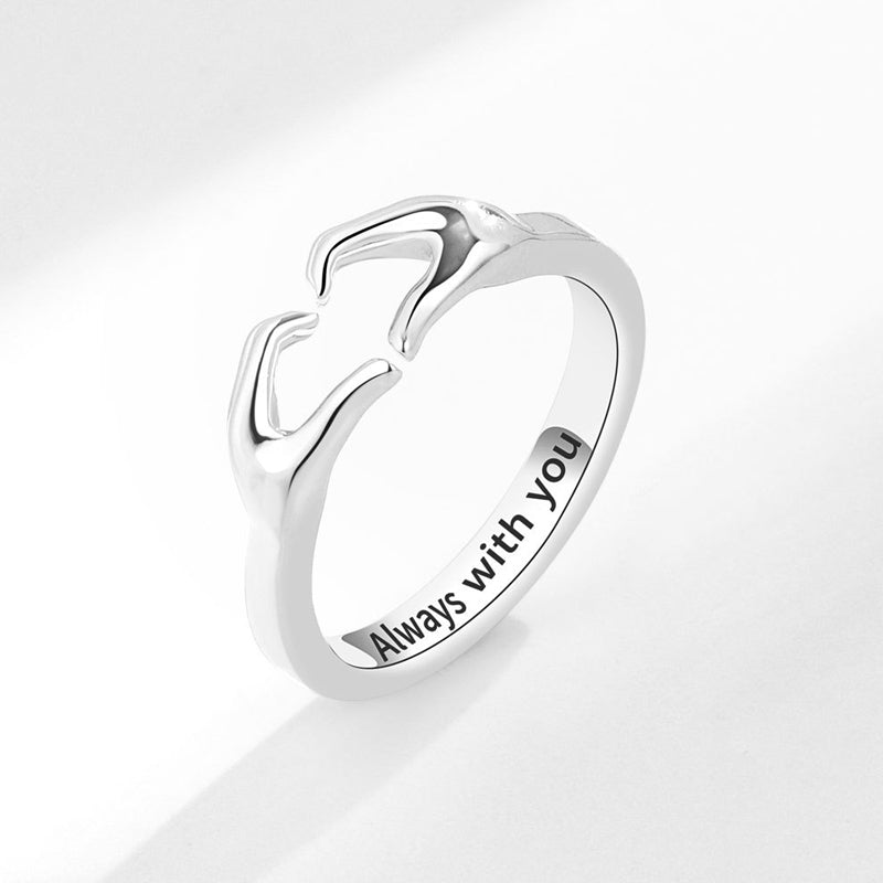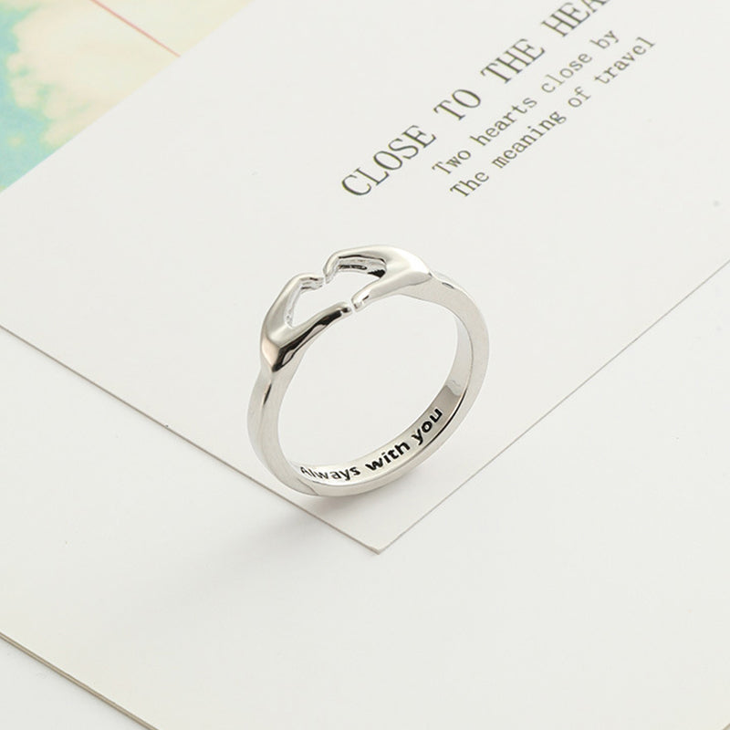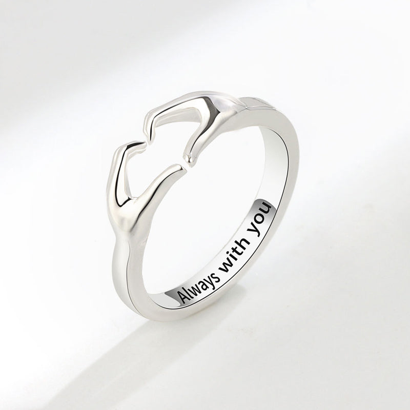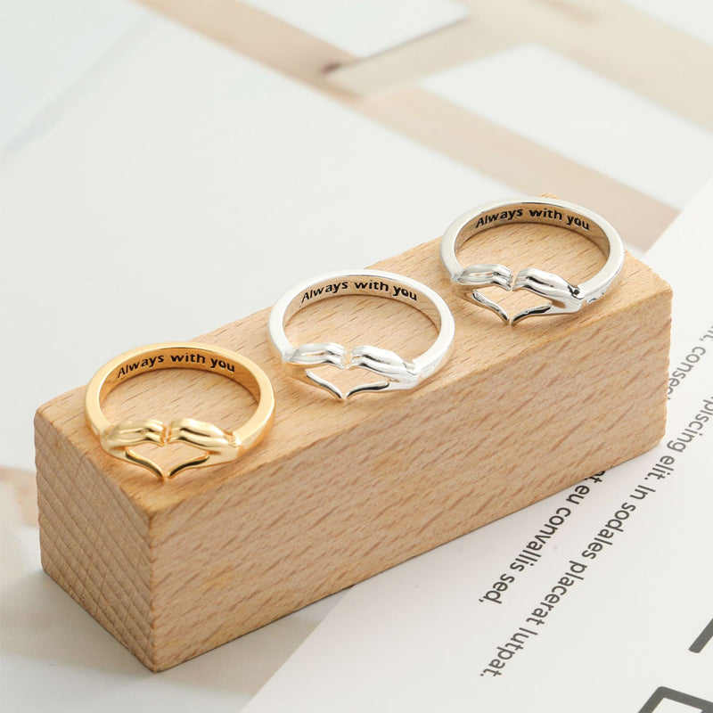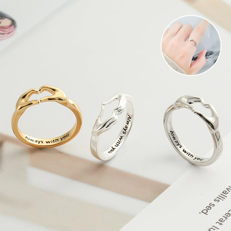 Kramringe til kvinder Sterling sølv design, omgivet af dobbelte kramme hænder, symbol på lidenskab, venskab, den varmeste kærlighed og beskyttelse og indgraveret "always with you" på indersiden, Det betyder, hvor end den, du elsker befinder sig, vil du altid være hos dem, for evigt.
