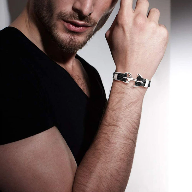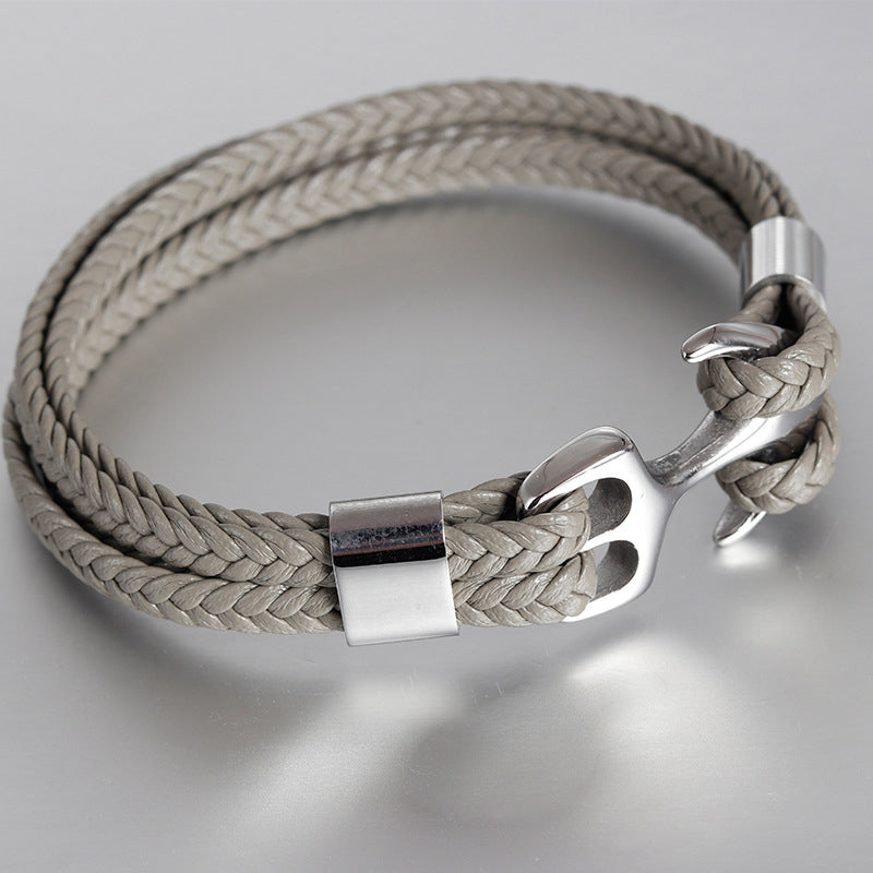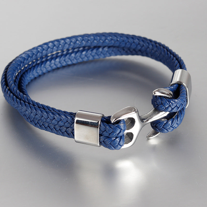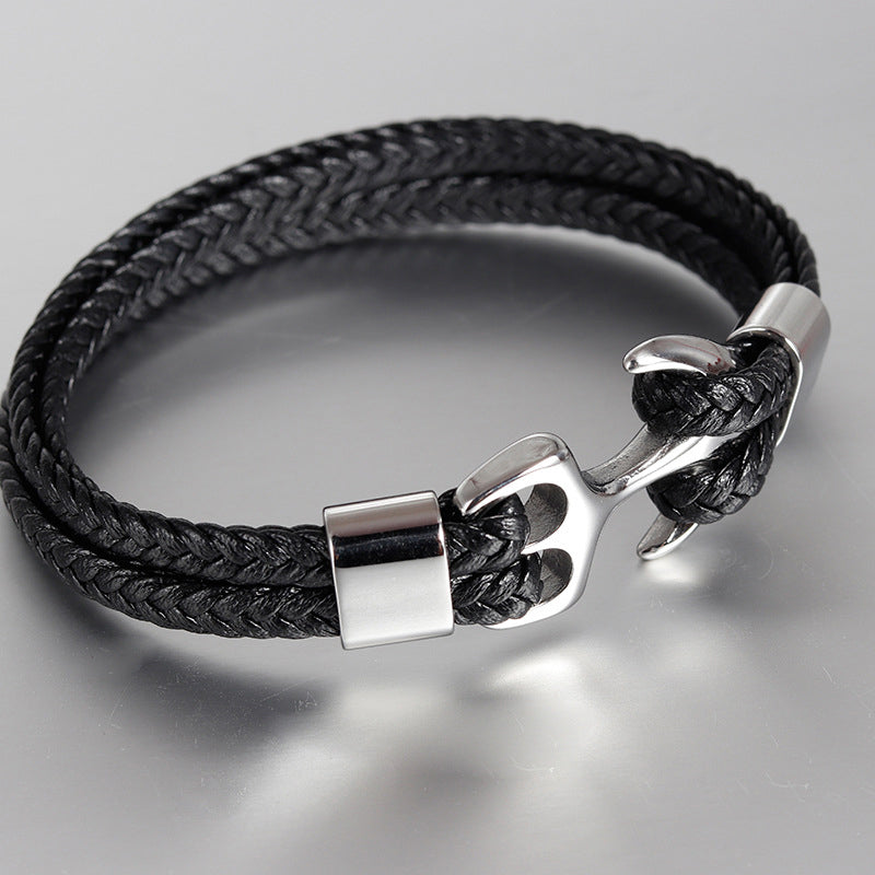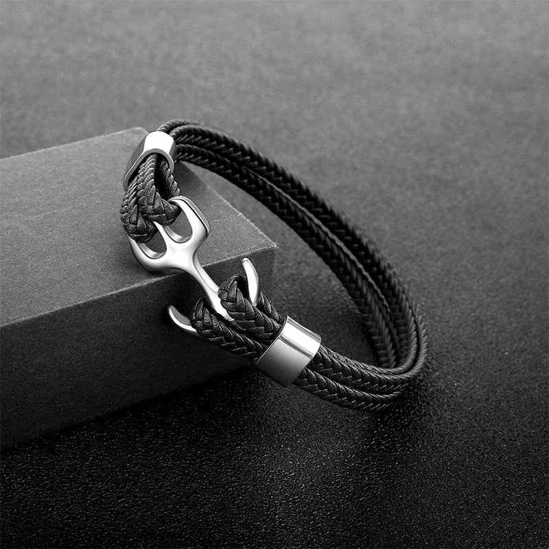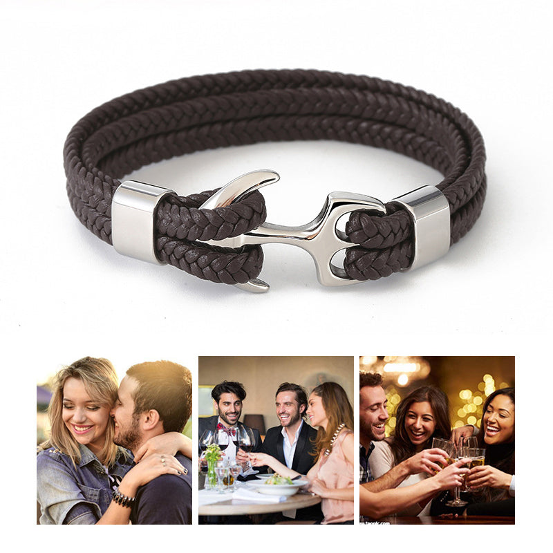 • Indlæs billede til gallerivisning Læderarmbånd med anker i rustfrit stål