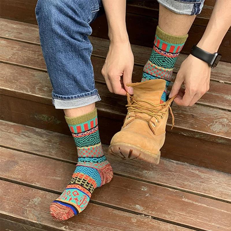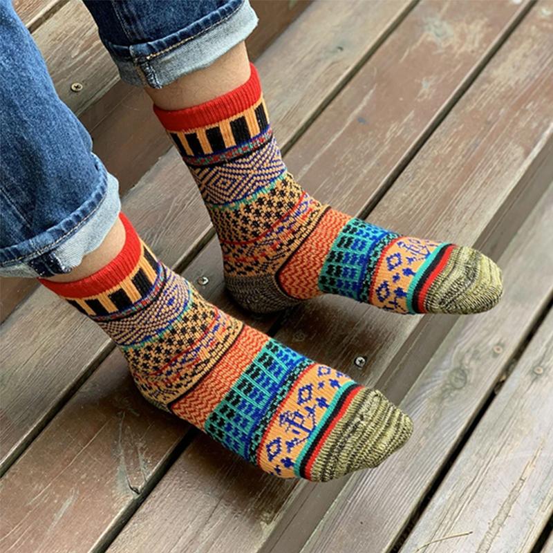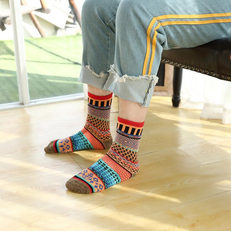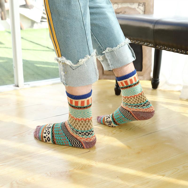- Pakken indeholder: 5 par Retro-sokker i etnisk stil til mænd