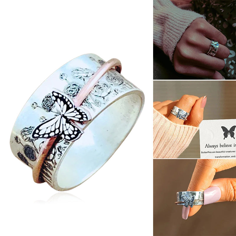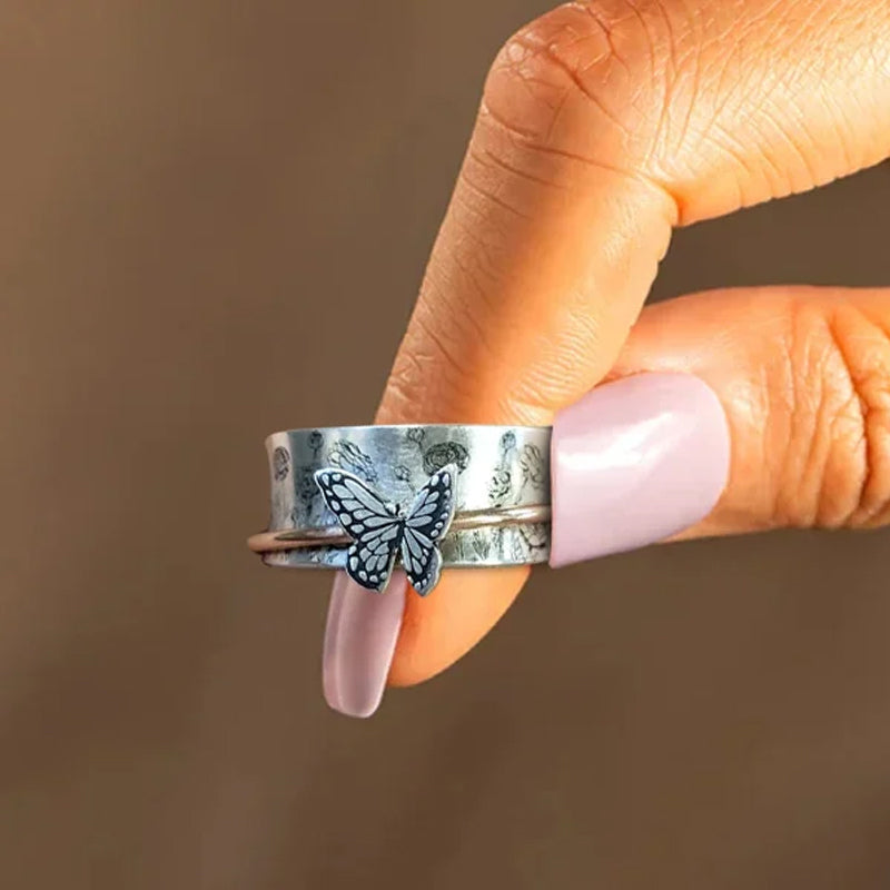 • Indlæs billede til gallerivisning Sommerfugle Sølv Spinner Ring