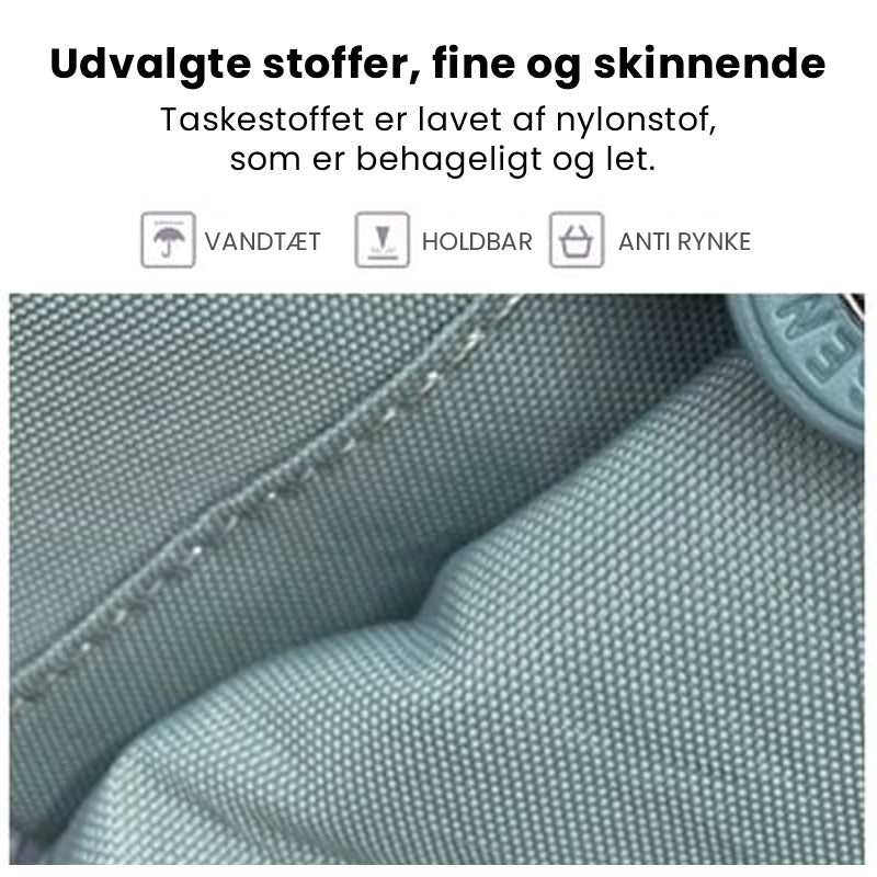 - Hovedmateriale: Hovedmaterialet, der bruges til at fremstille denne rejsetaske, er nylon, som er meget holdbart: Dette materiale bruges til at lave sejl, telte, rygsække og andre genstande, der kræver stabilitet.