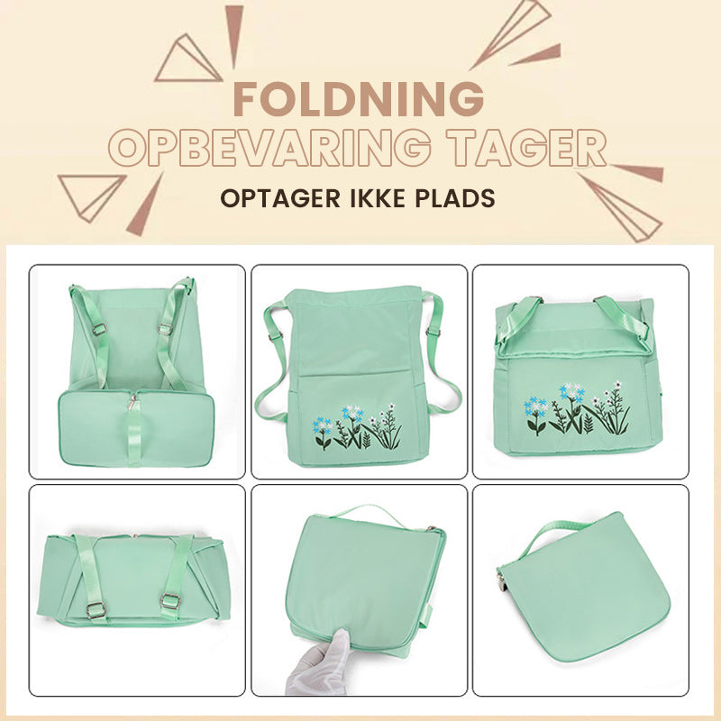 Den sammenklappelige rygsæk kan rumme bøger, mobiltelefoner, sammenklappelige paraplyer, sko, vandflasker, vigtige ting, tablets, tøj og andre ting.
