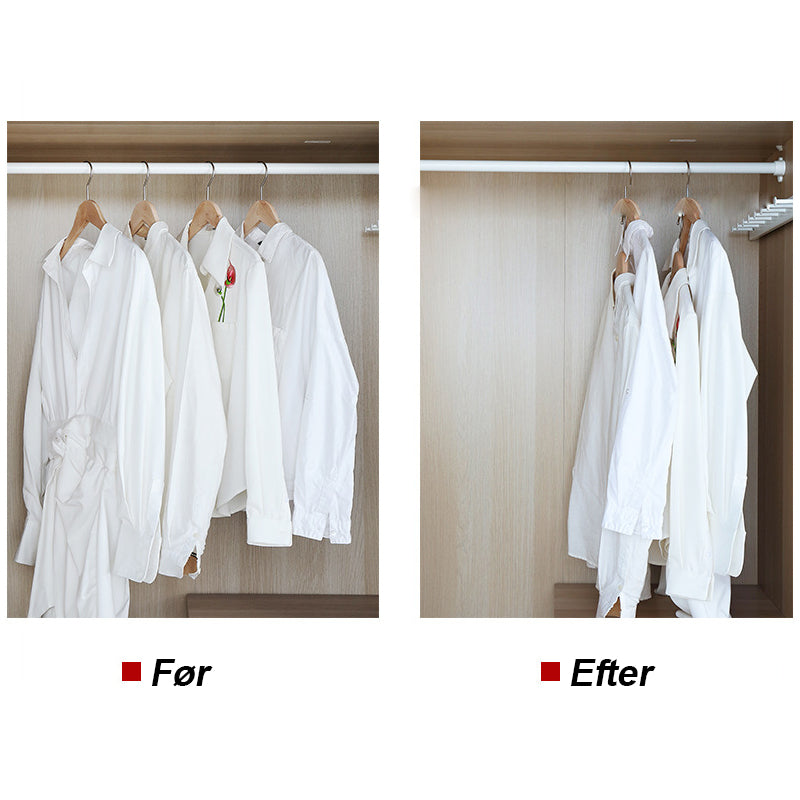 Hæng to eller flere stykker tøj på samme plads som én; designet med en slids i toppen og en krog i bunden giver den dig mulighed for at forbinde to eller flere bøjler sammen med lethed.