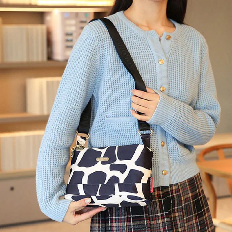 Denne crossbody-taske er lavet af Oxford-stof i høj kvalitet og kombinerer mode og funktionalitet på perfekt vis. Dens livlige trykte design giver et strejf af personlighed til ethvert outfit, og de mange lommer giver rigelig plads til at organisere dine vigtigste ting.
