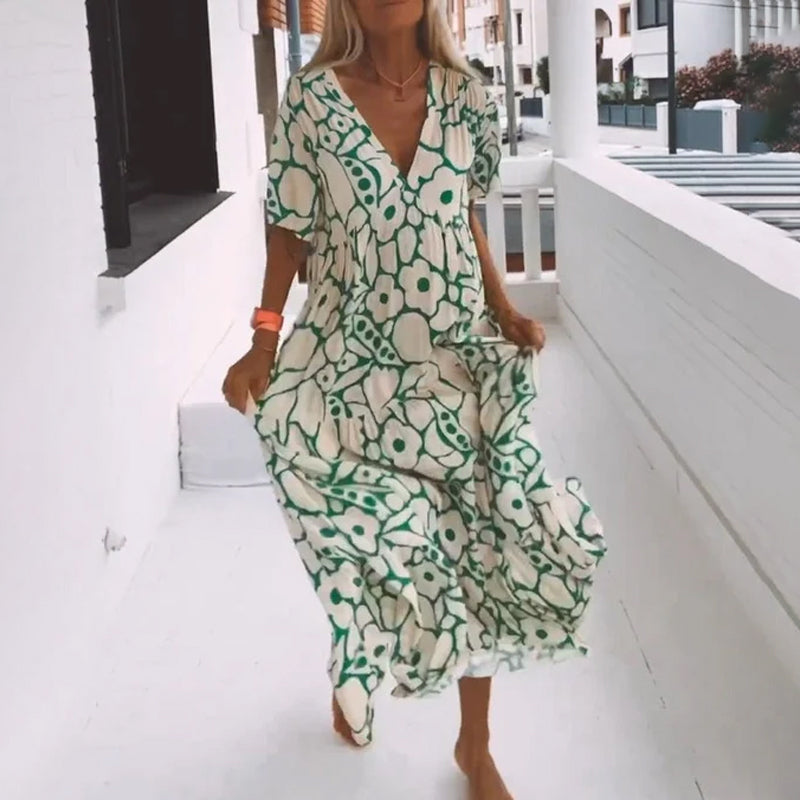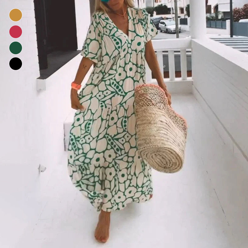 • Indlæs billede til gallerivisning Kortærmet kjole med tryk