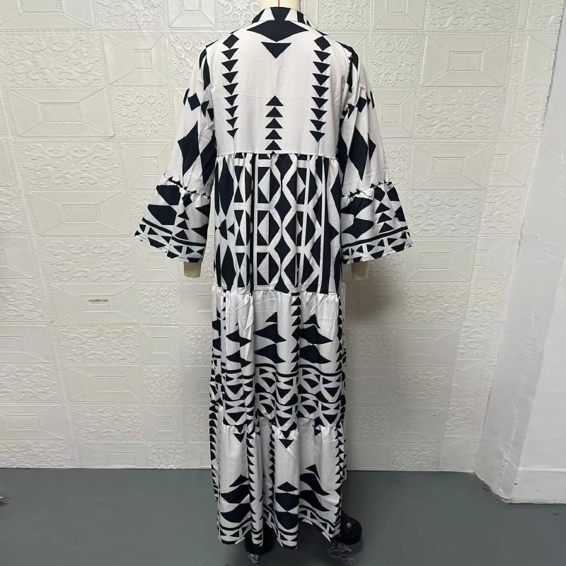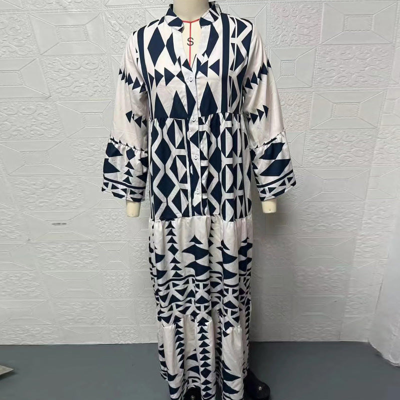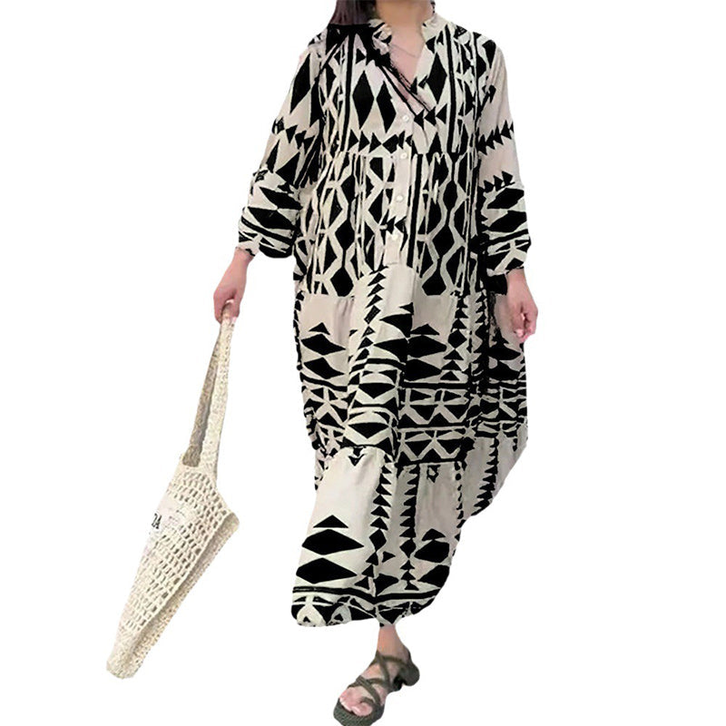 • Indlæs billede til gallerivisning Ny Elegant trykt skjorte Boheme-kjole