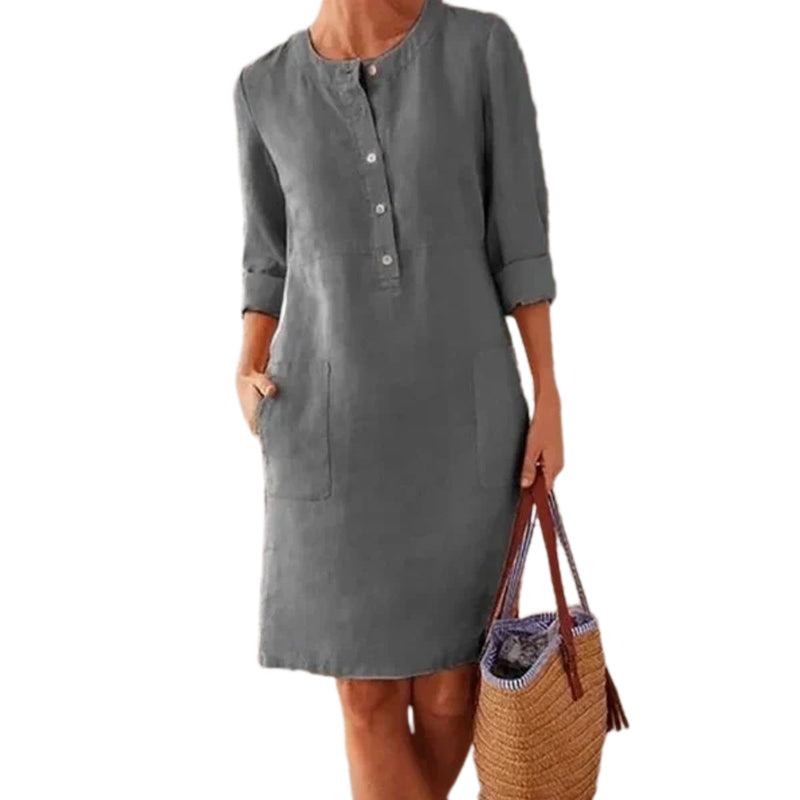 • Indlæs billede til gallerivisning Renfarvet casual kjole med rund hals i bomuld og hør