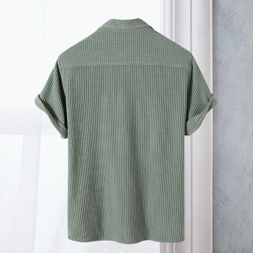 Ensfarvet Langærmet Skjorte i Afslappet Fit med V-udskæring (Herre)