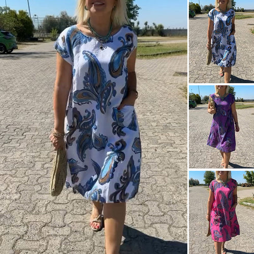 Rundhalset flæsekant Top i bomuld og hør mellem ærmer