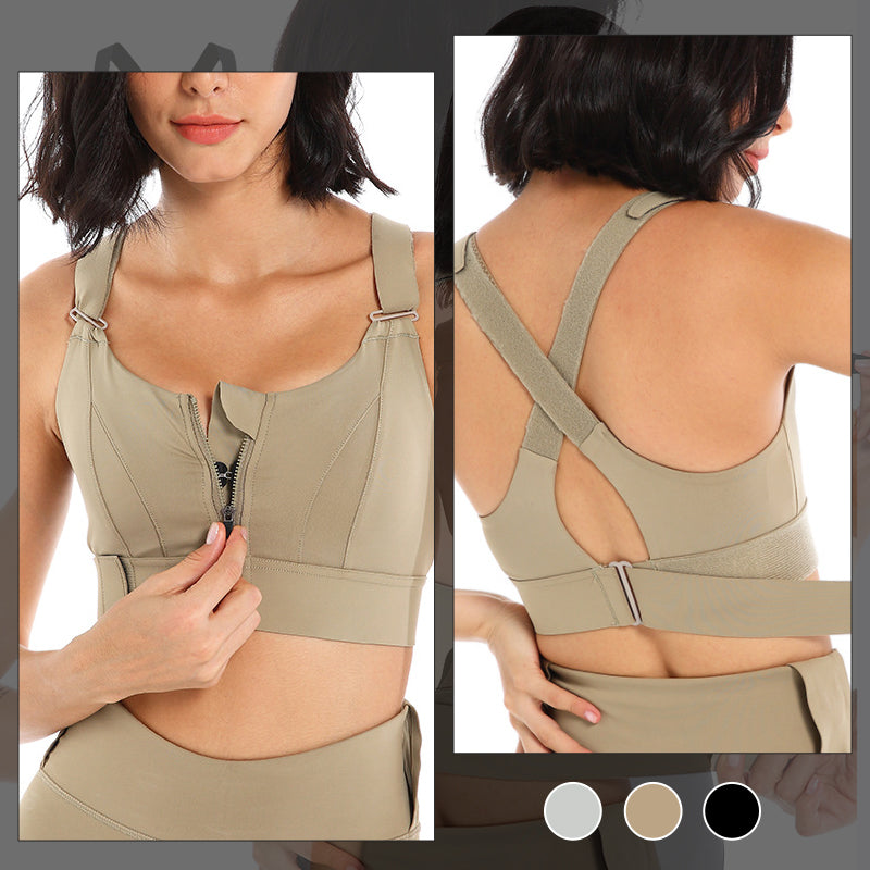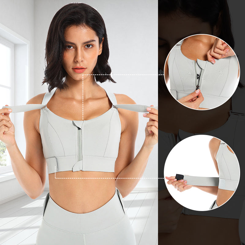 Den trådløse sports-bh er skabt til at støtte dig, men ikke til at stramme dig.Den hjælper dig med at forhindre, at dine bryster ryster og gør ondt, mens du dyrker ekstremsport eller træner. Og med dens lynlåslukning har det aldrig været nemmere at have en behagelig bh på!