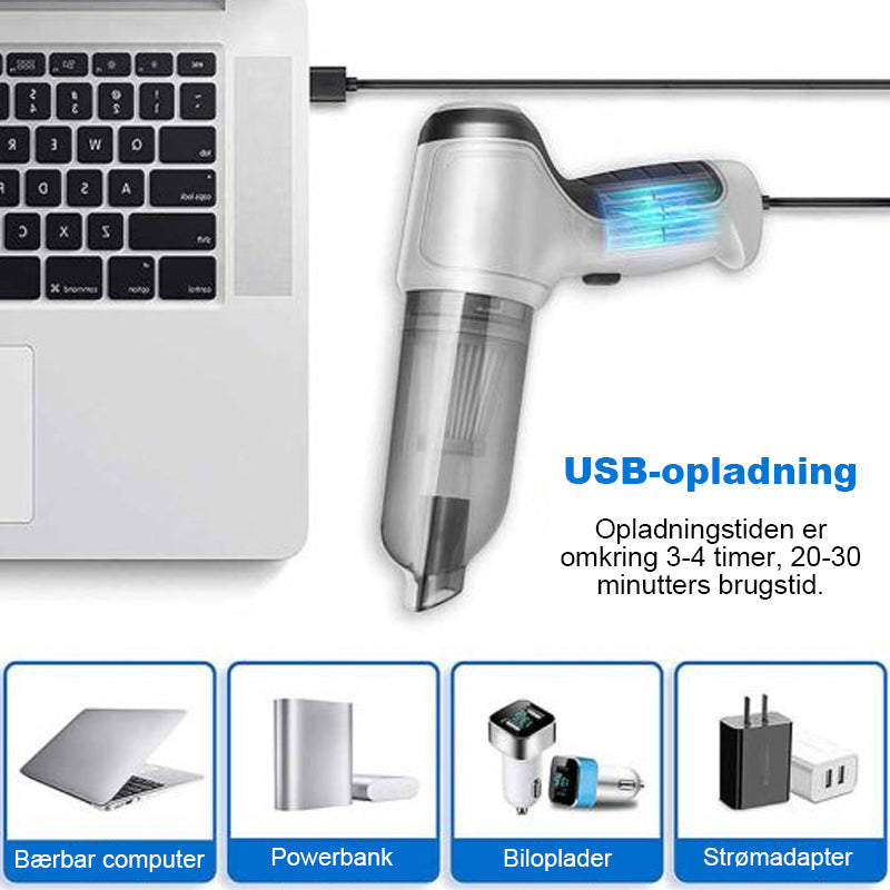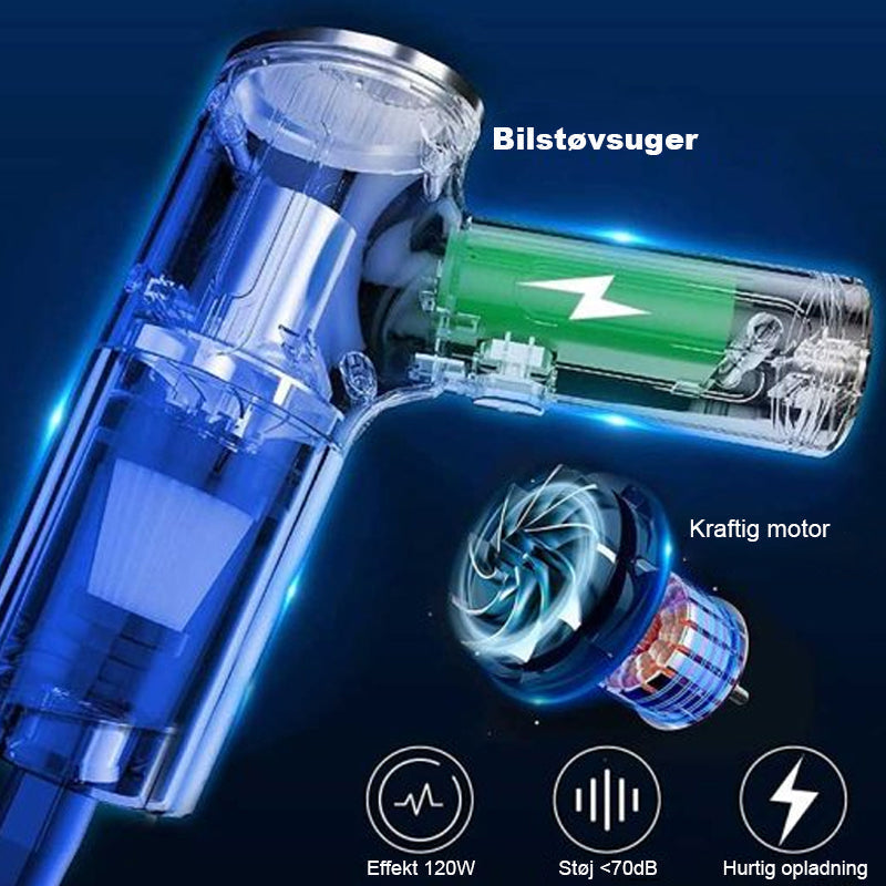 Hold din bil og dit hjem pletfri!: Vores smarte, trådløse støvsuger er det perfekte værktøj til at rengøre din bil og dit hjem på farten! Fjernelse af snavs og støv bliver super nemt og hurtigt!