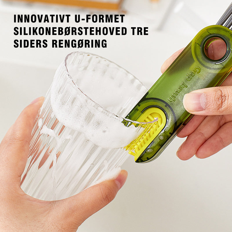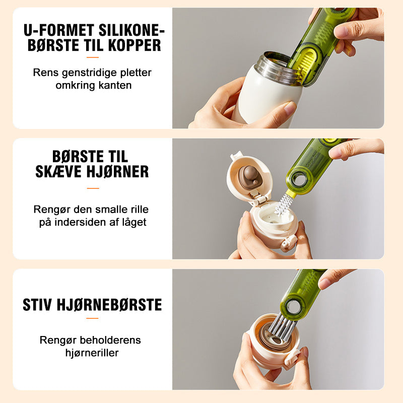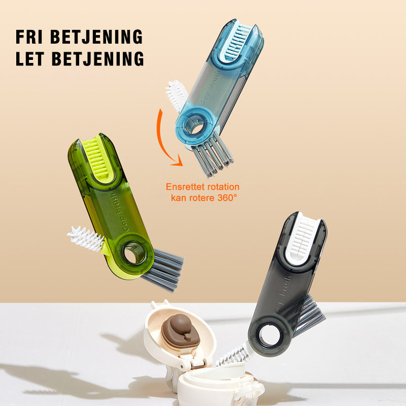 3 i 1 rensebørste: Vores rengøringsbørste består af tre dele: flaskerensebørste, hvid børste og børste til smådetaljer. Dyserensebørsten kan bruges til at rense snavset i rillen, demonteringsanordningen bruges til at lirke tætningsringen og rense mellemrummet. Den hvide børste kan rense snavset fra flaskeproppen.