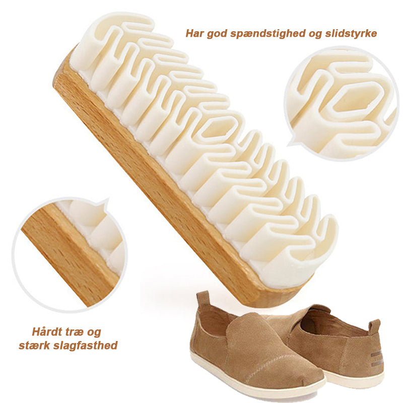 Mere end bare sko - Denne 12*3*4 cm crepebørste er ikke kun god til sko - den kan også bruges til andre ruskinds- og nubucklæderprodukter som bælter, tasker, jakker eller endda sofaer.