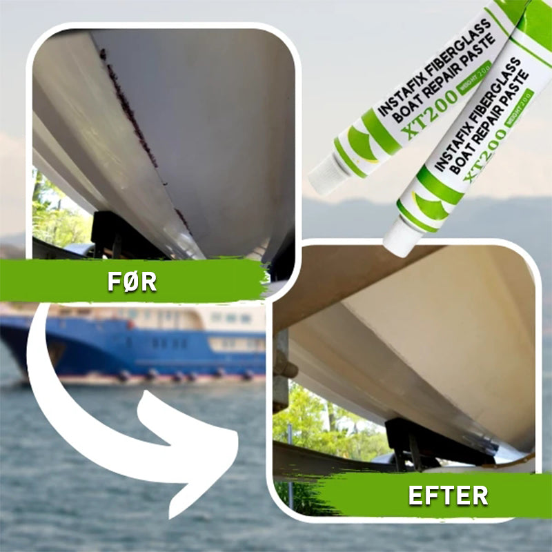 - Reparer permanent hak, skruehuller, revner, huller og ridser i glasfiberskrog og dæk