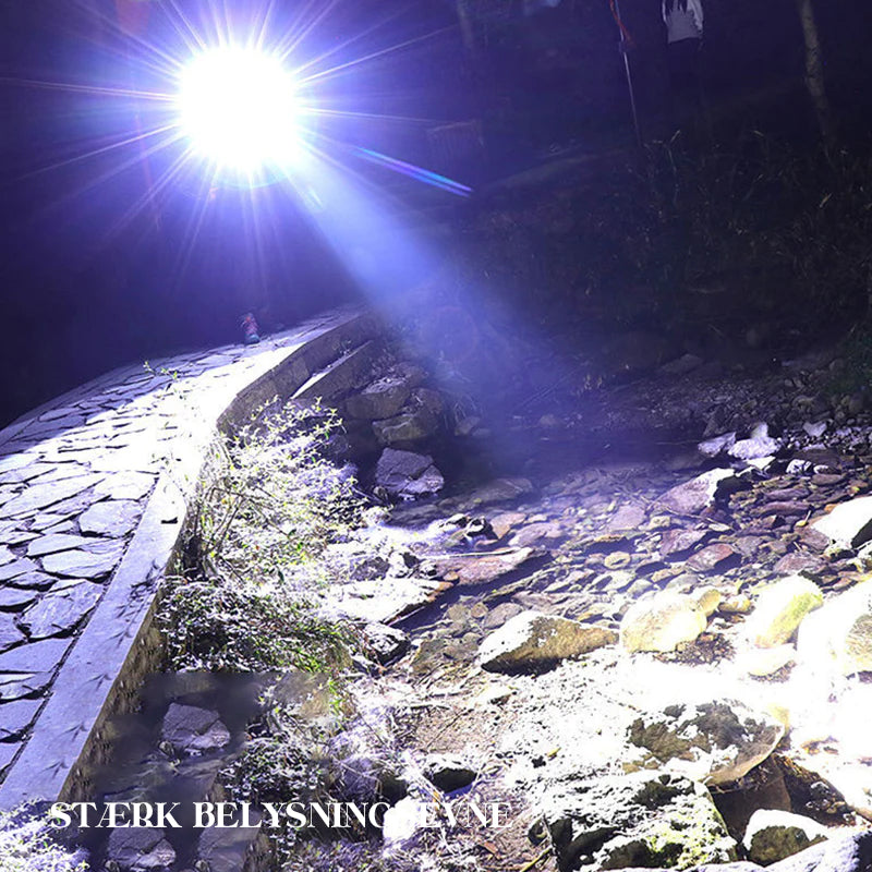- Kraftig projektor, skabt til kraftig belysning: De kraftige lampeperler kan producere op til 100.000 lumens ultrahøj output, 40 gange mere end almindelige glødelamper. Du kan nu kaste lys over en legeplads eller fokusere på genstande fra 390 meters afstand! Projektoren er velegnet til fjernbelysning, da den er udstyret med blitzfunktion. Blinklyset er velegnet til alarmeffekt i nødsituationer.