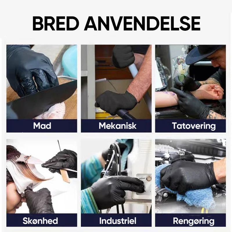 - ✅PLEJER DINE HÆNDER - Nitrilhandskerne holder dine hænder beskyttede mod væsker, olie, skrid, gasser og skarpe genstande. En ideel løsning til allergikere.
