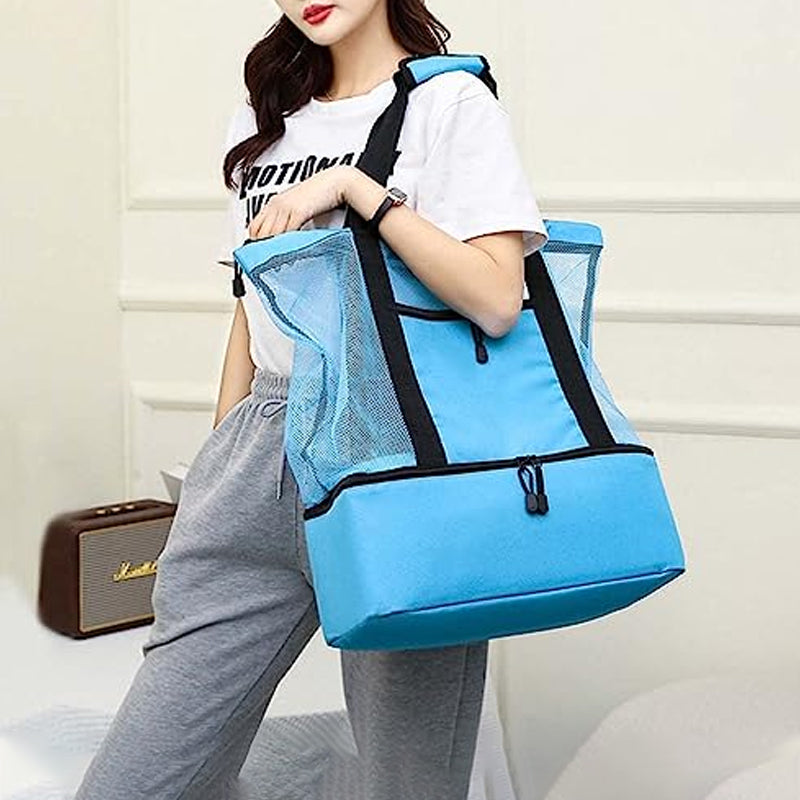 2-i-1 tote-bag i mesh med aftagelig sektion