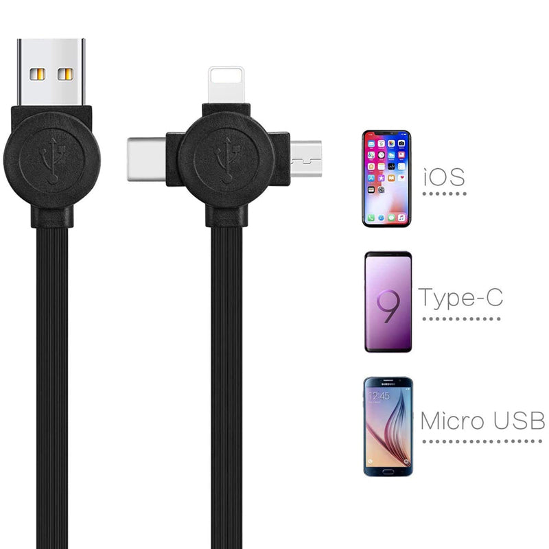 [3-i-1 design] 3 universelle opladningsporte til dig Lightning + Micro + type-C opladningsport i ny stil. Let at skifte mellem 3 porte.