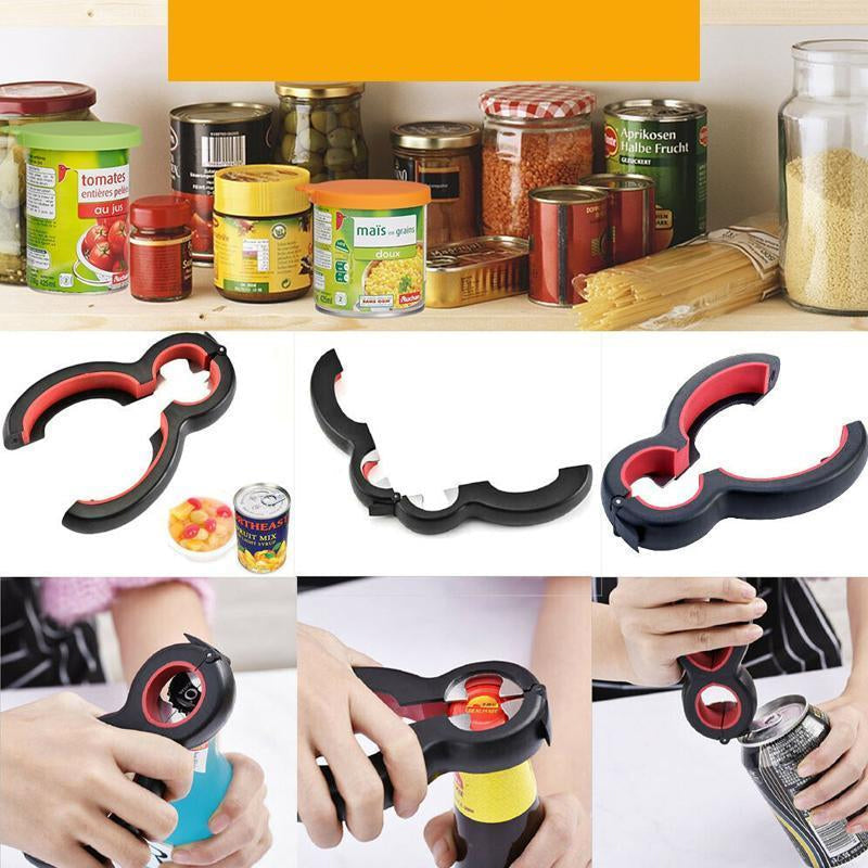 Med denne 6-i-1 multifunktionelle flaskeåbner kan du nemt åbne forskellige typer flasker og krukker!