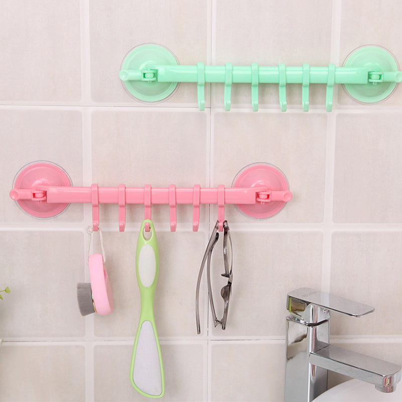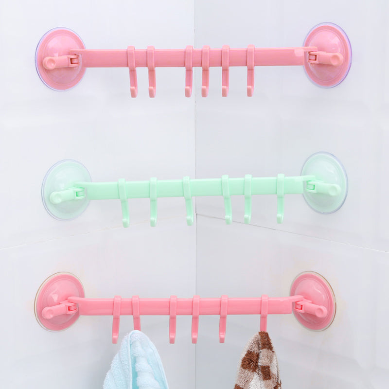 Kop og lås design, stærk adsorptionskraft, god bæreevne, 6 kroge kan monteres på væggen, kan flyttes rundt. Vakuum dobbelt sugekop, stærk sugekraft kan tåle ca 3-5 kg.