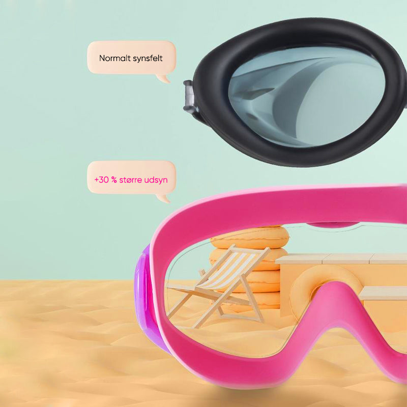 【Stort brilleglas for bedre udsyn】 Med det store brilleglas giver svømmemasken perfekt lys og bedre udsyn i vandet. Det bredere, fleksible silikonestel giver ekstrem komfort og skaber en perfekt tætning omkring dine øjne.