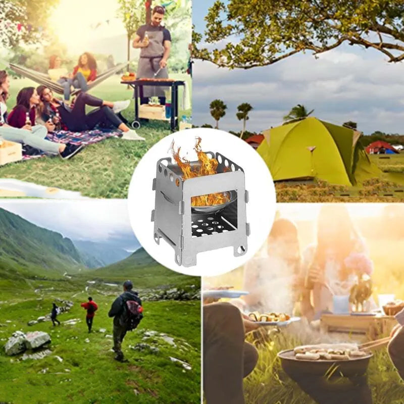 Alsidige tilberedningsmuligheder: Grillpanden og grillnettet er perfekte til udendørs grill, mens komfuret giver fleksibilitet til at lave mad med kviste, blade, grene, alkohol eller endda kogende vand.
