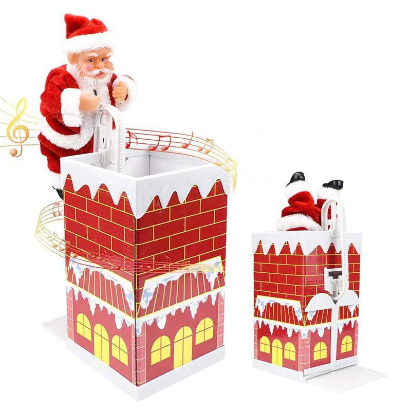 - Klatrer op og ned af skorstenen, musikken spiller på samme tid