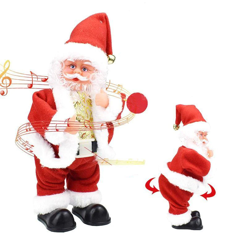 - Installation: Kræver 3 AA-batterier (medfølger). Efter batteriet er installeret, sætter julemanden sig på hug og twerker til musikken.