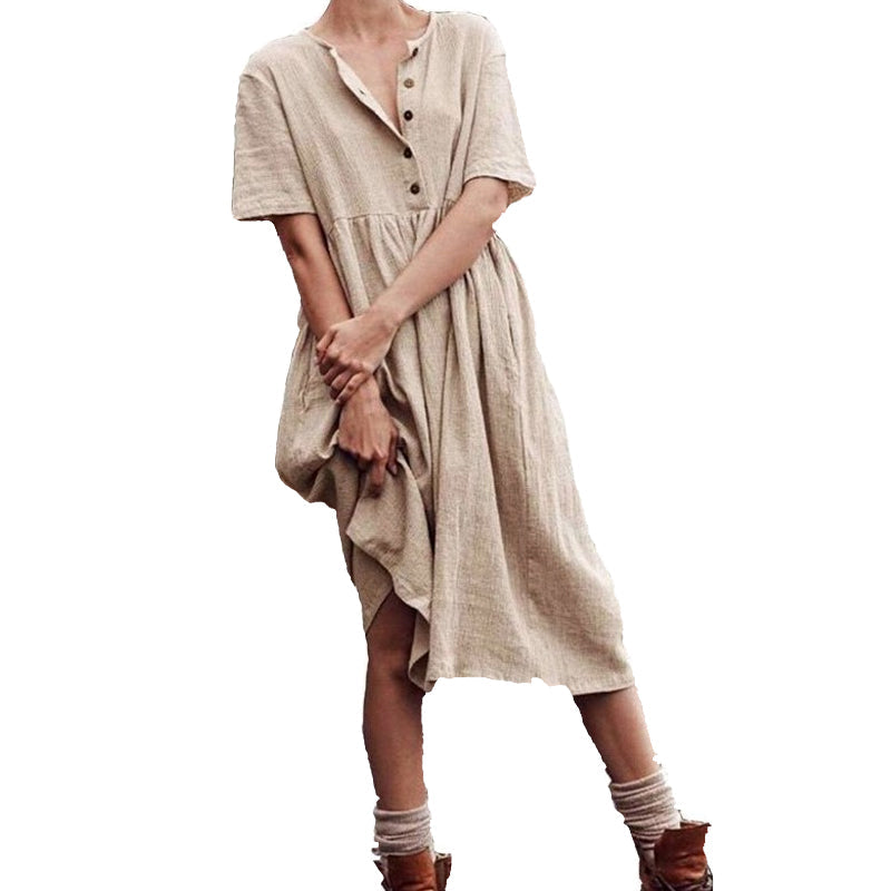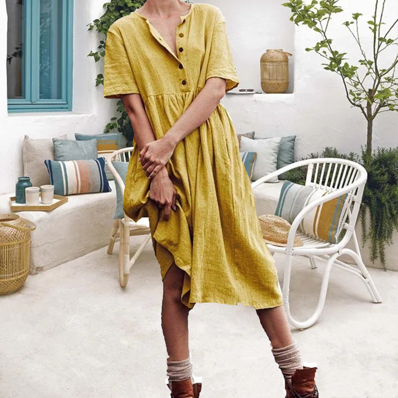 • Indlæs billede til gallerivisning Bomuld linned slim kjole