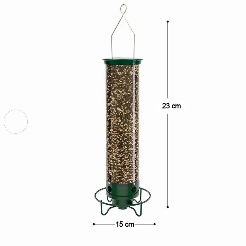 - Vægtaktiveret kantring: Fugle vil ikke sætte rotationen i gang. Selv større arter som spætter og kardinaler, men egern udløser funktionen, så foderautomaten begynder at snurre og tager egernet med på en vild snurretur, før egernet kastes (forsigtigt) af siddekanten.