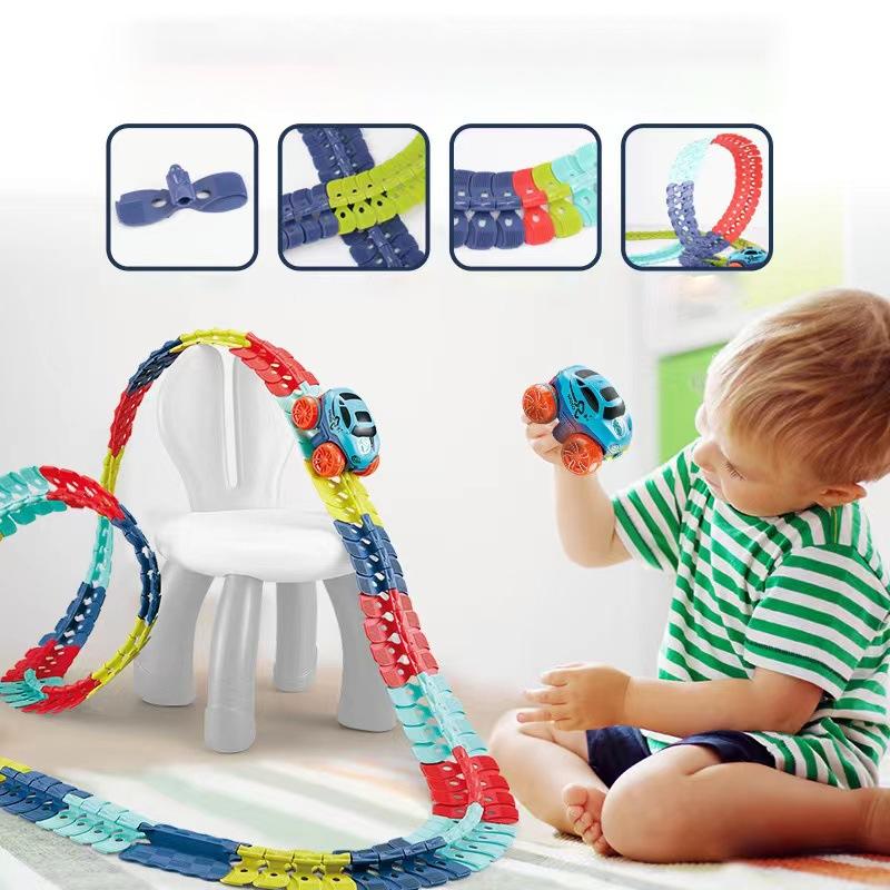 Lad dine børn nyde spændingen og glæden ved fleksible racerløb med denne sjove racerbane.